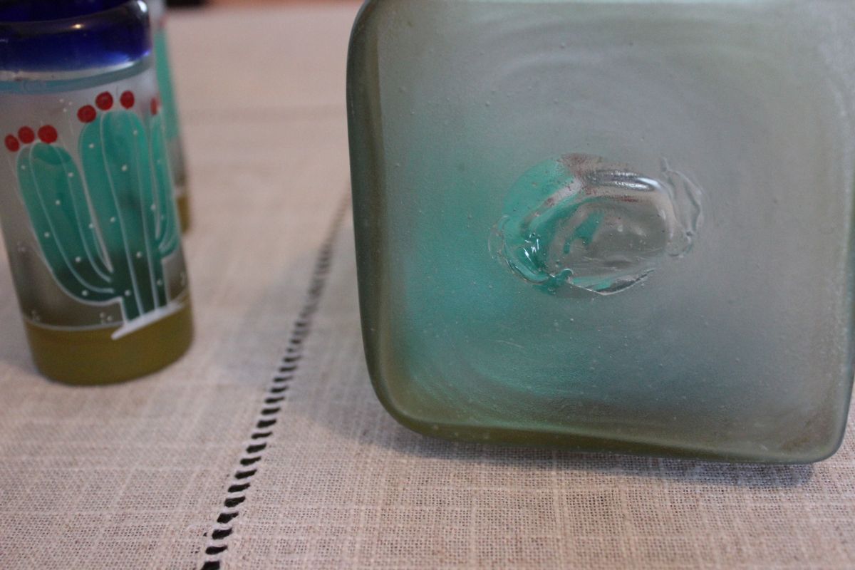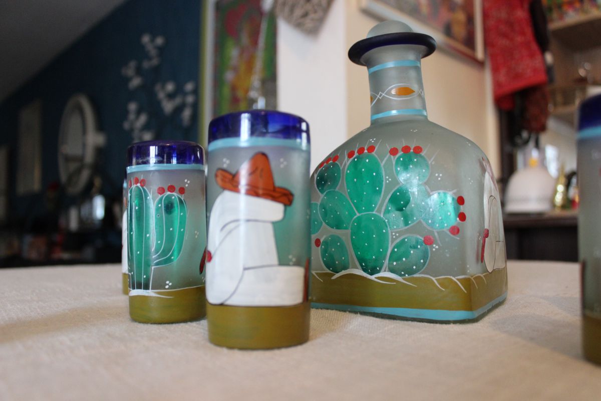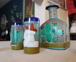 En verre soufflé et peint à la main au décor cactus et mexicain.