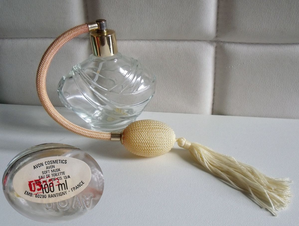 - 1 très beau vaporisateur à parfum (vide) à poire tissée, peu courant, Etat NEUF fonctionne parfaitement, contenait EDT de AVON - 100 ml - 11 cm de hauteur, forme ventrue 10 cm de largeur (au + large) En Excellent état (comme NEUF)
