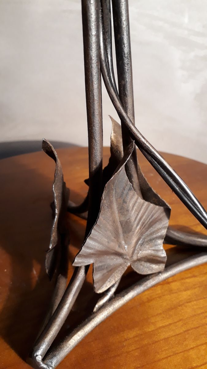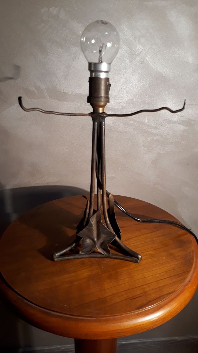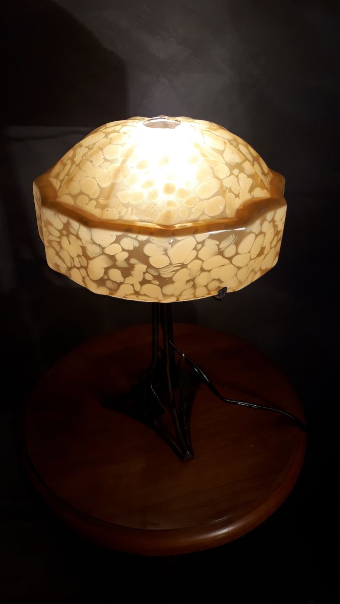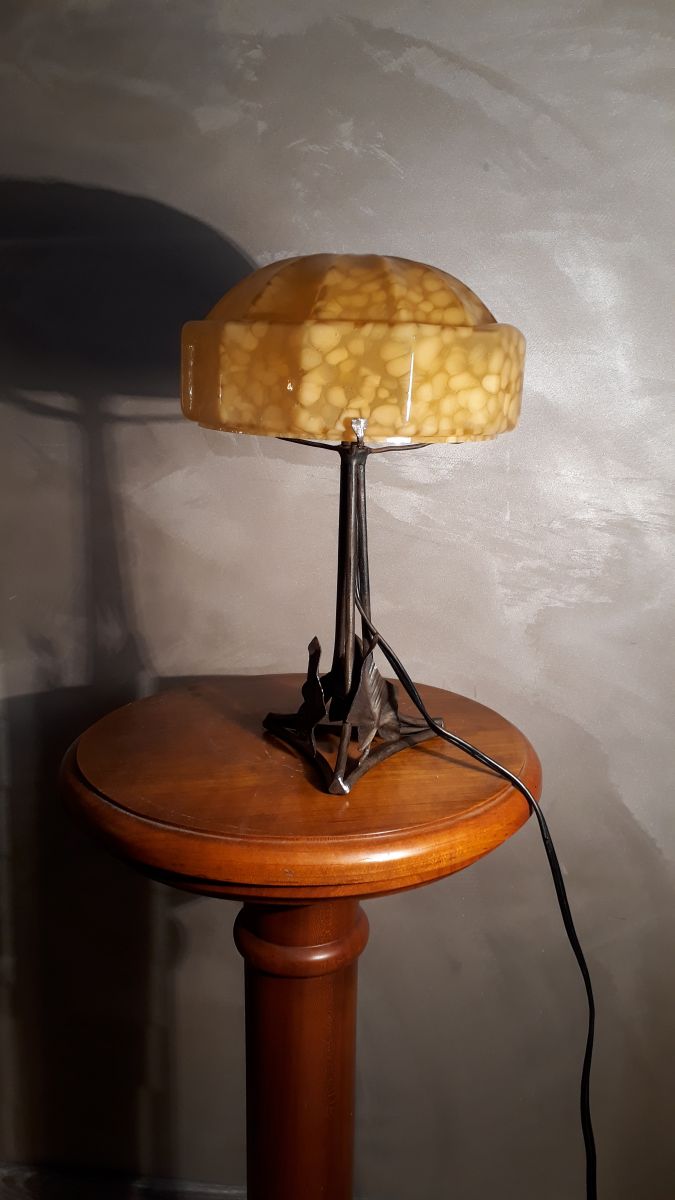 petite lampe art deco fer forge avec son verre clichy ambre electricite ok 28x20