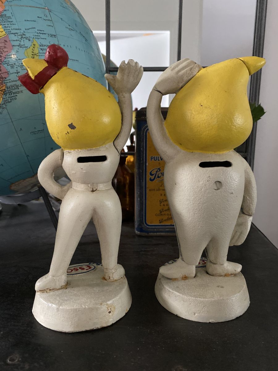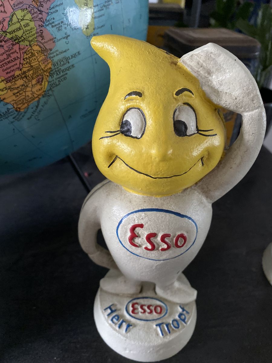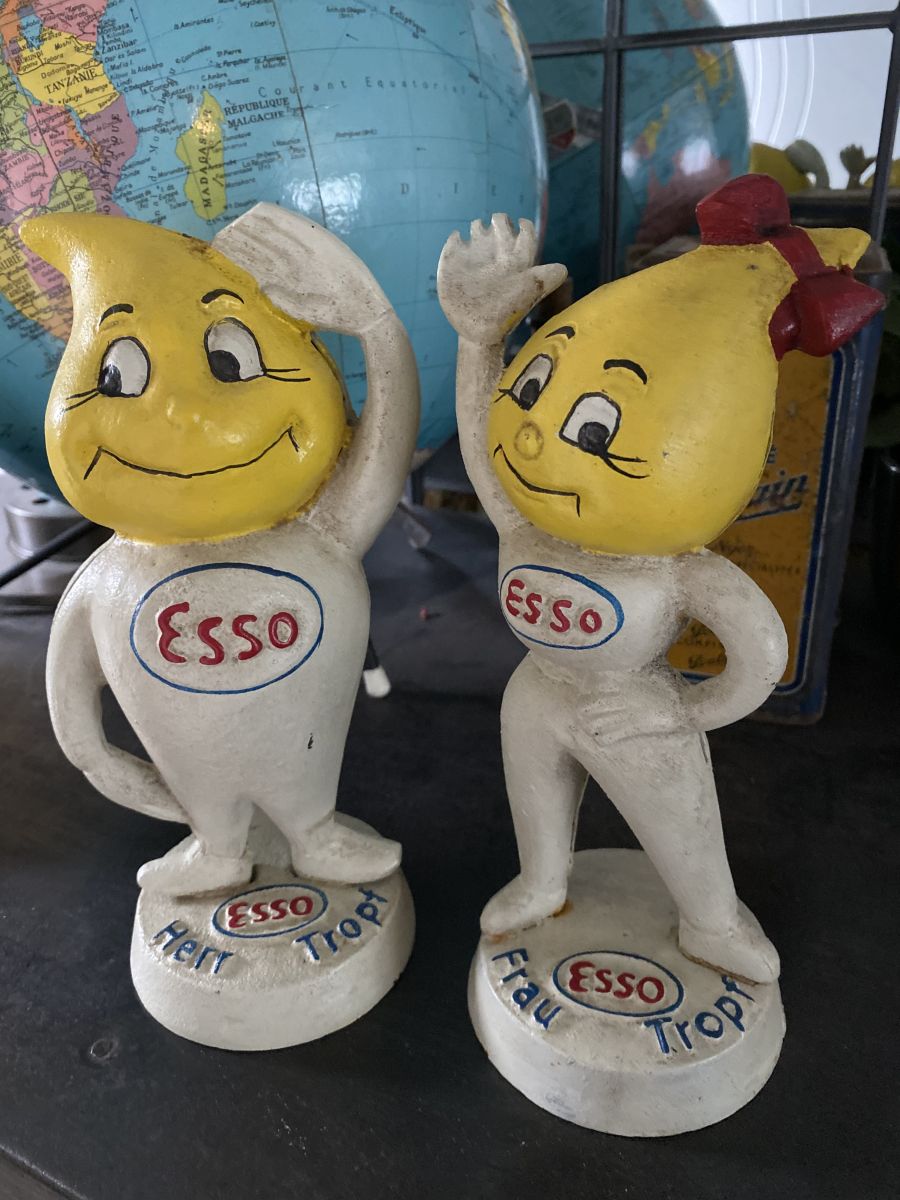 Ancien couple ESSO goutte d'huile tirelire en fonte.