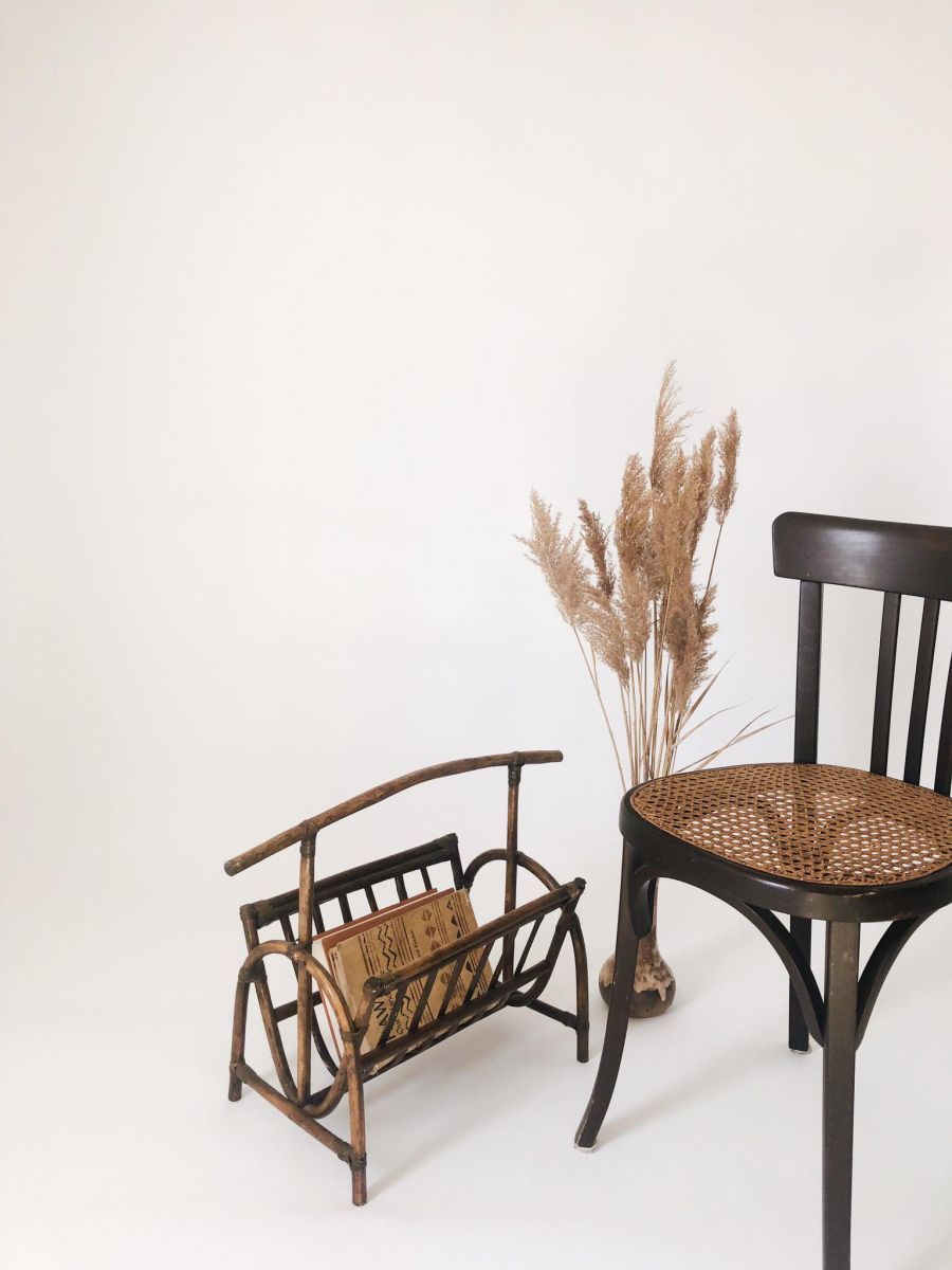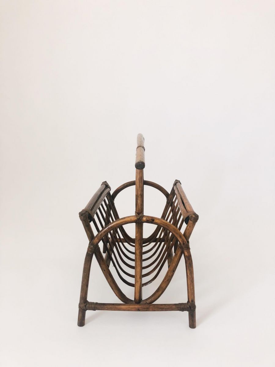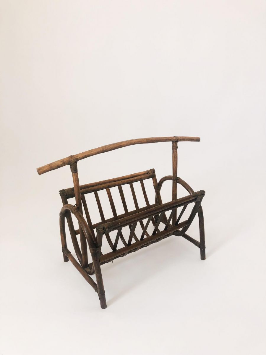Porte-revue vintage en rotin. Idéal pour une décoration vintage dans un salon, un couloir, une chambre. Ce porte revue trouve sa place partout dans une maison. Il est en très bon état (aucune branches en rotin de cassées). Dimensions: L58xla28xh43