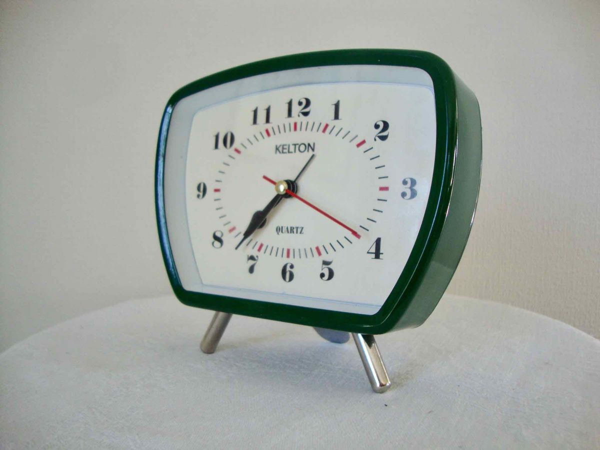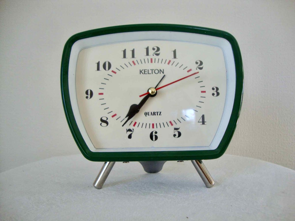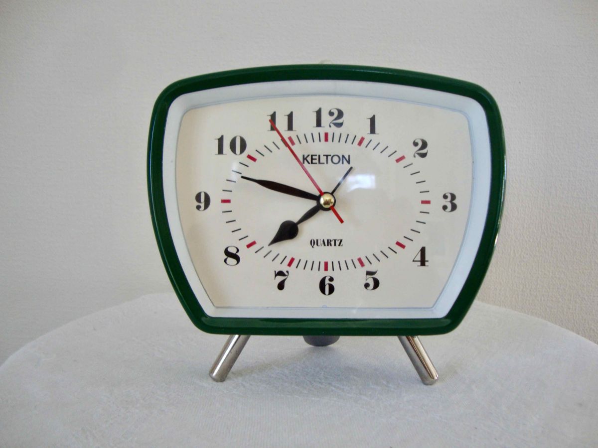 Réveil Kelton qui n’a de vintage que son aspect rétro, il marche (avec une pile) mais pas que.