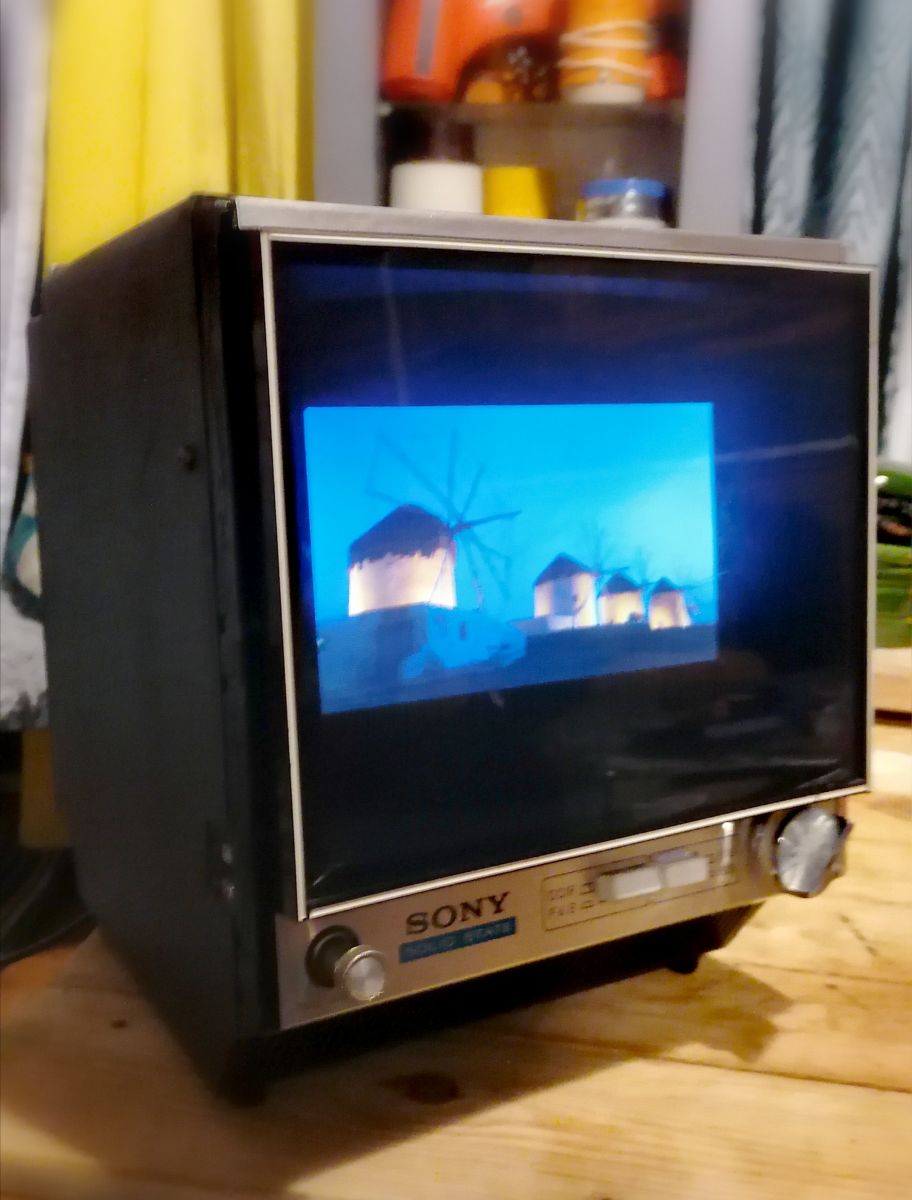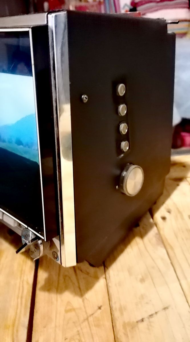 Elle a été transformé afin de lui donner une seconde vie en cadre numérique photos, il a été placé à l'intérieur sans avoir dénaturé l'objet. Le cadre possède une télécommande.
