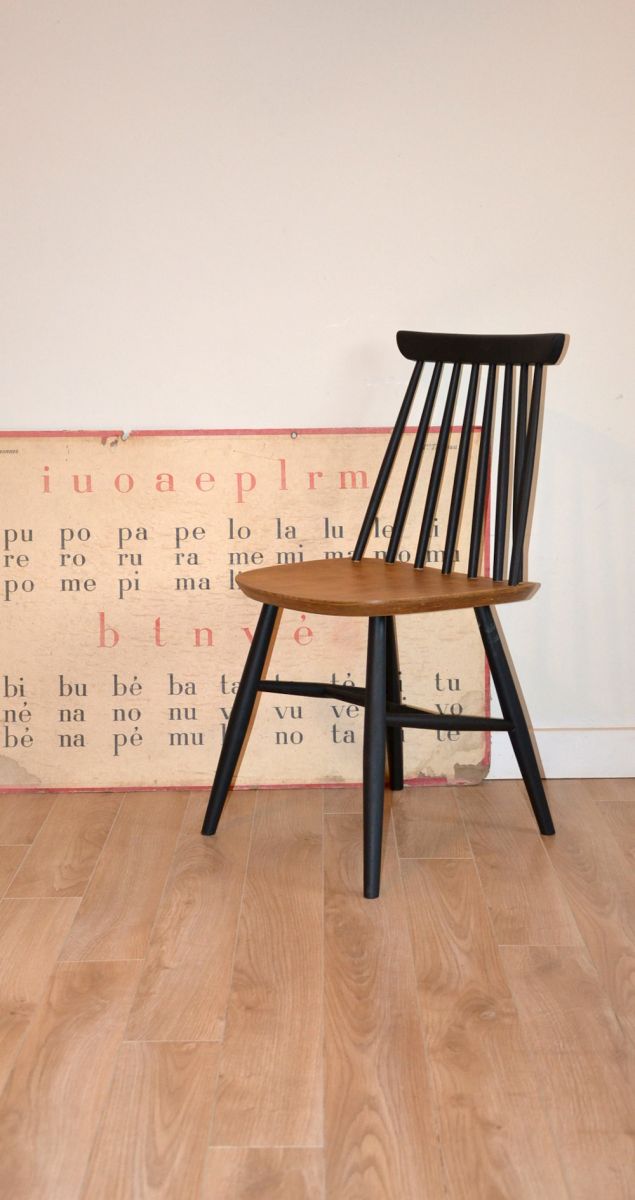 revisité en noir mat façon Fanett de Tapiovaara et assise reverni.
