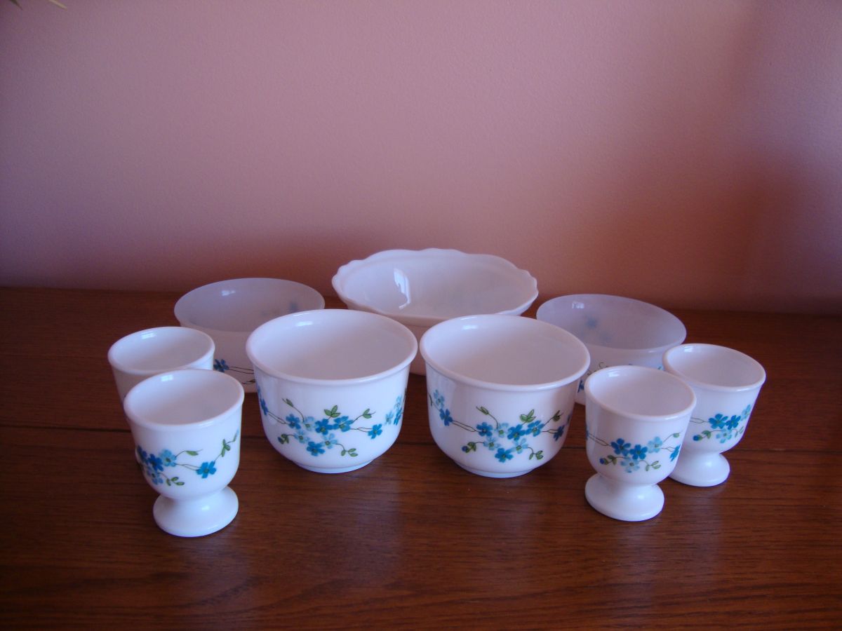 Lot coquetiers tasses à café ramequins arcopal Myosotis