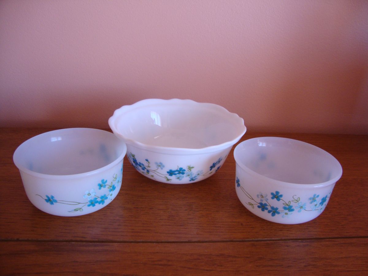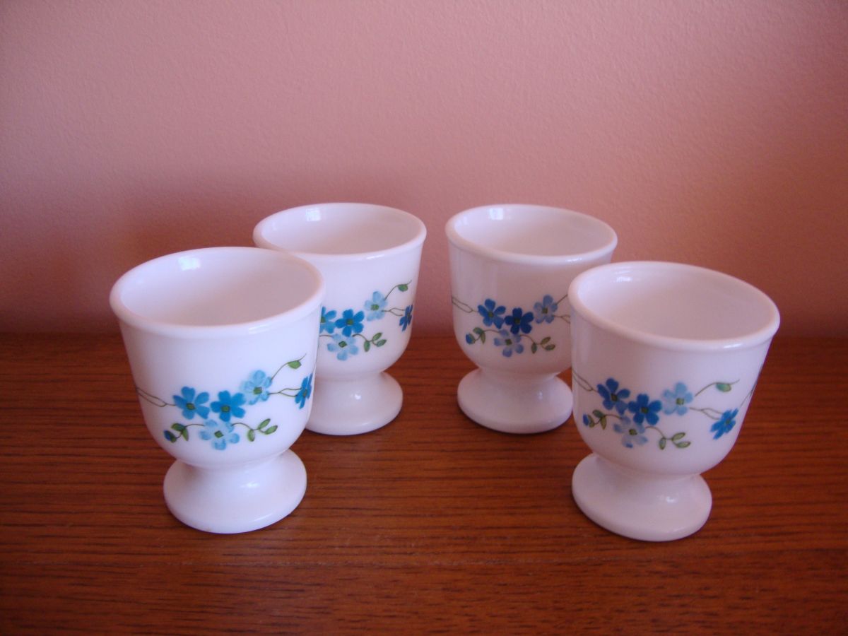 4 jolis coquetiers en arcopal décor myosotis