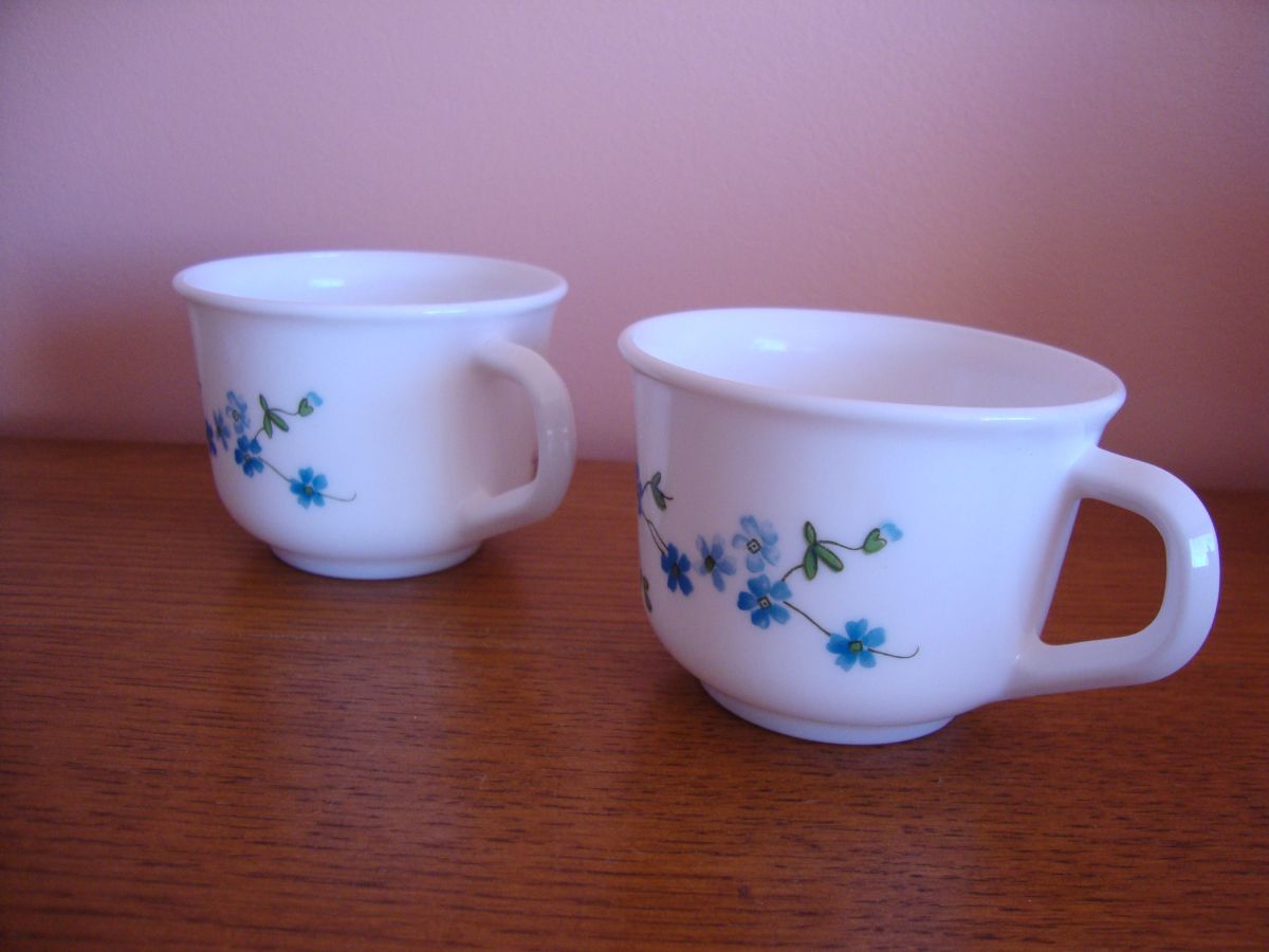 2 jolies petites tasses à café vintage en Arcopal décor Myosotis
