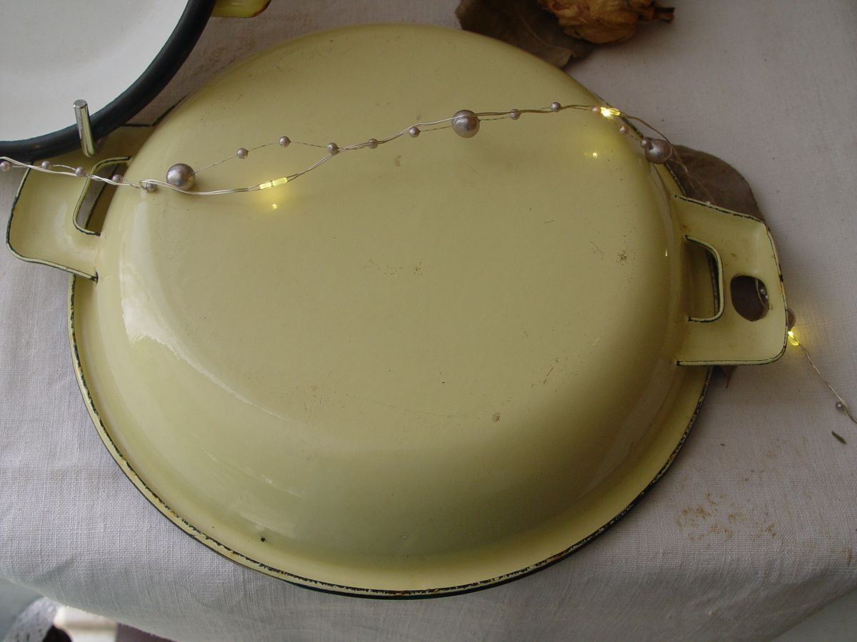Lot de 2 plats VINTAGE en tôle émaillée jaune