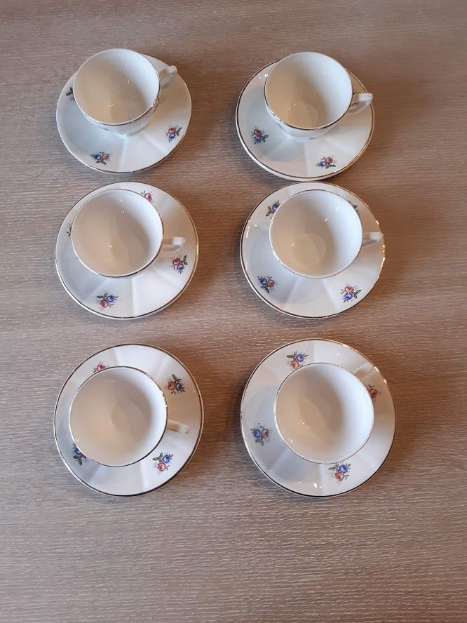 6 anciennes tasses et leurs sous tasses, vintage 1920, shabb