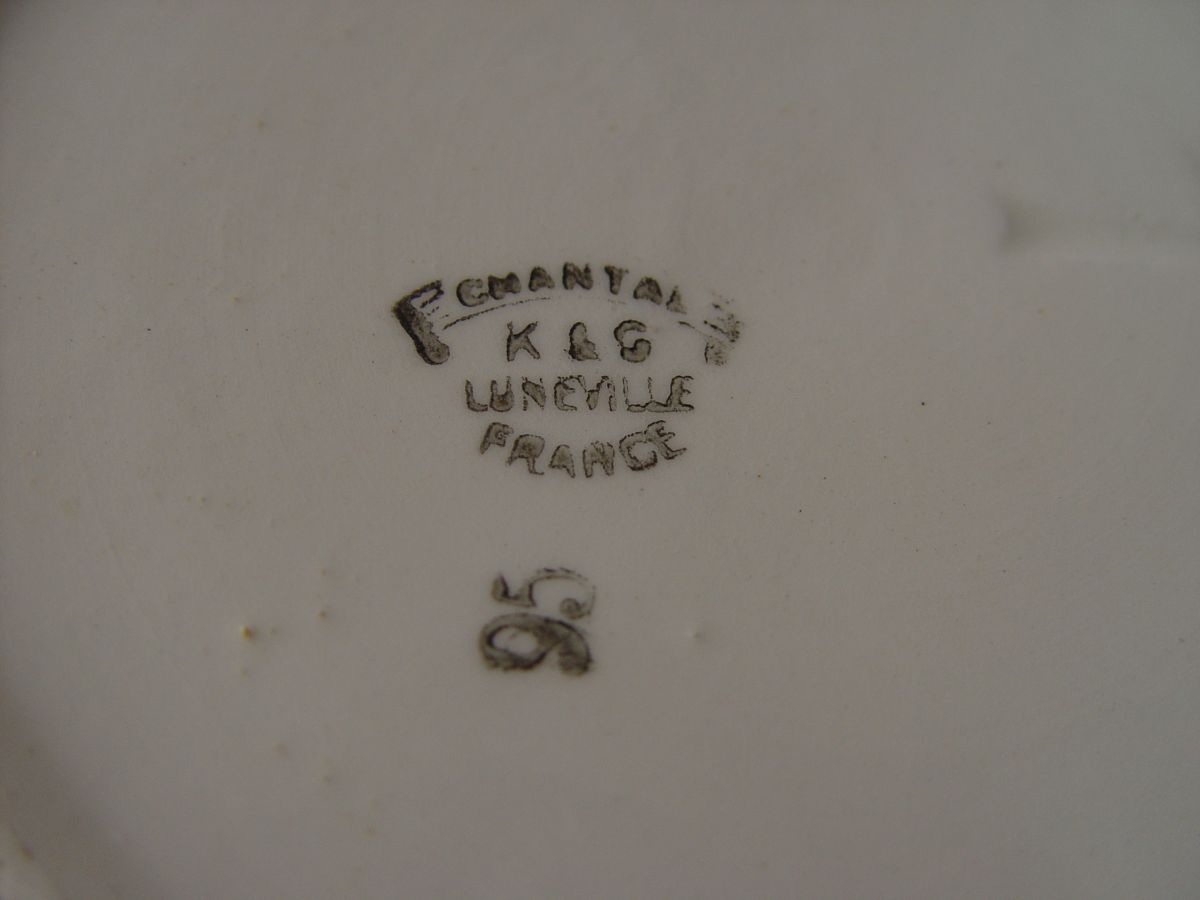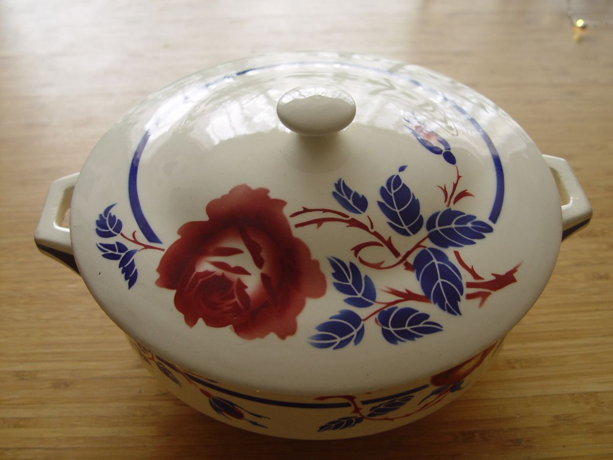 Peinture au tampon à décor de rose rouge et bleu marine des faïenceries de Luneville - modèle CHANTAL -