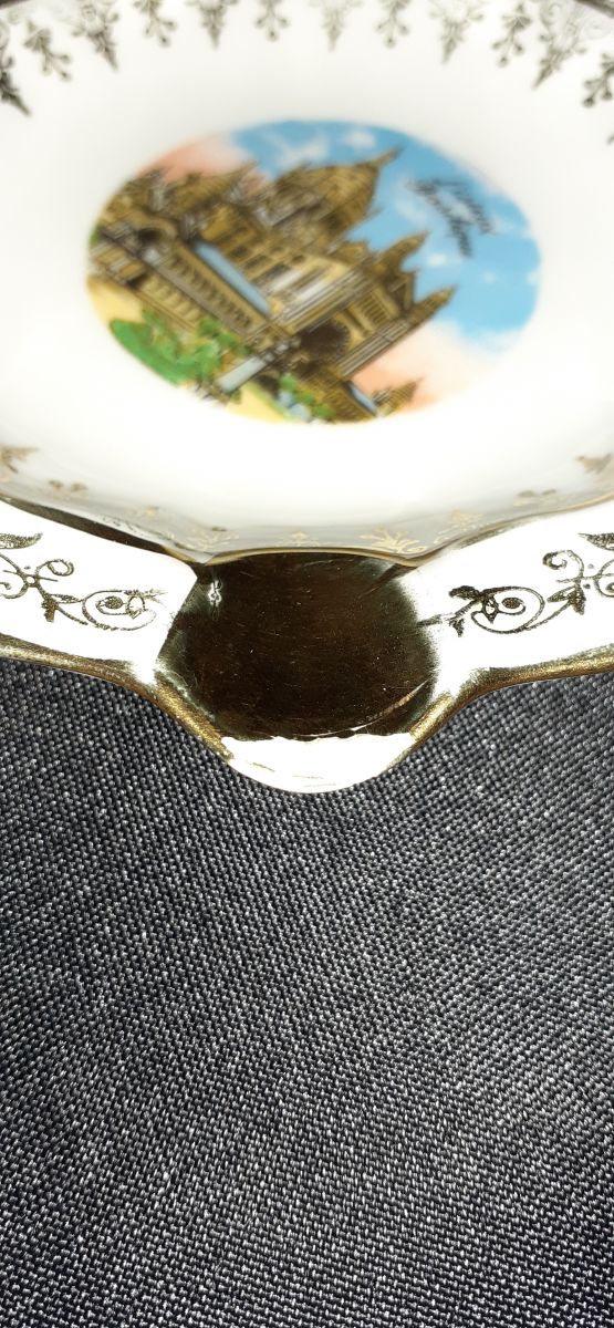 Cendrier en porcelaine de Limoges avec l'image de la basilique de Lisieux.