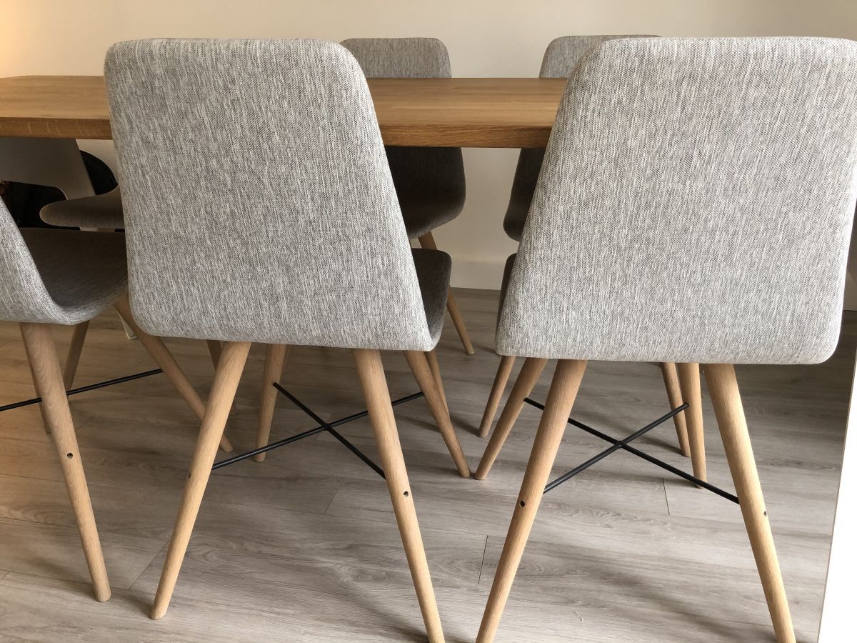 6 chaises danoises originales gris clair pieds bois massif