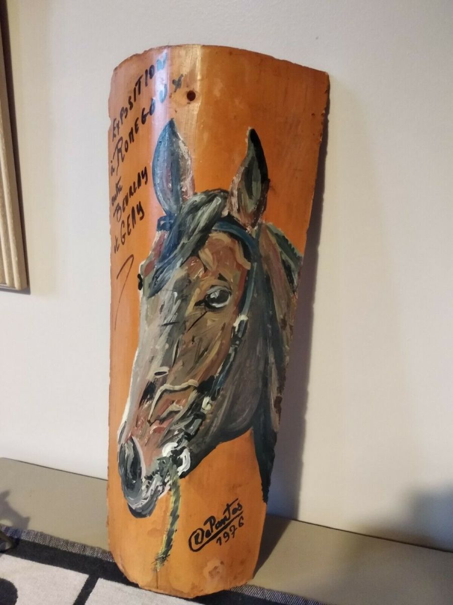 Tuile peinte tête de cheval exposition à Romegoux Charente-Maritime en 1976.