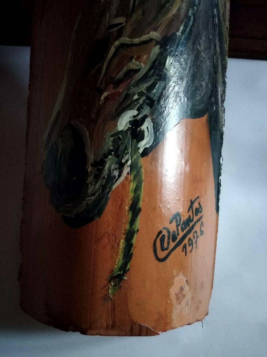 Artiste Depantos. Peinture huile tuile vernis devant. Ebréchée sur les côtés voir photos.. peinture faite sur tuile d'occasion. Un trou en haut pour l'accrocher.