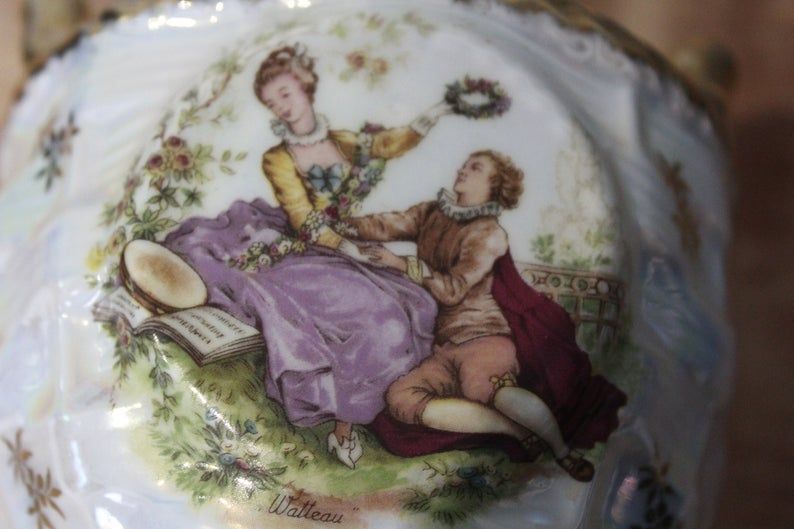 Flacon de toilette, décor WATTEAU - Porcelaine de Luxe