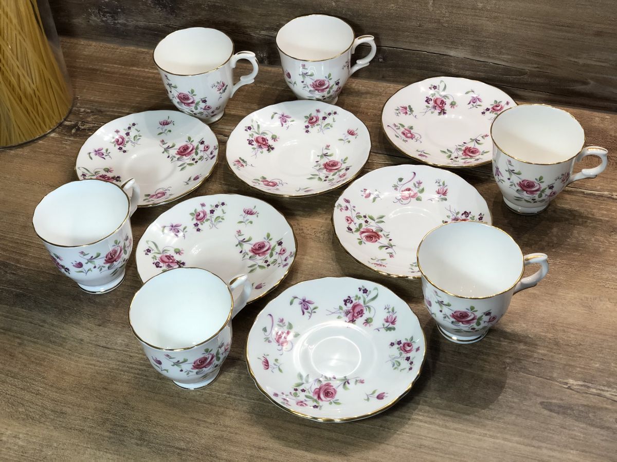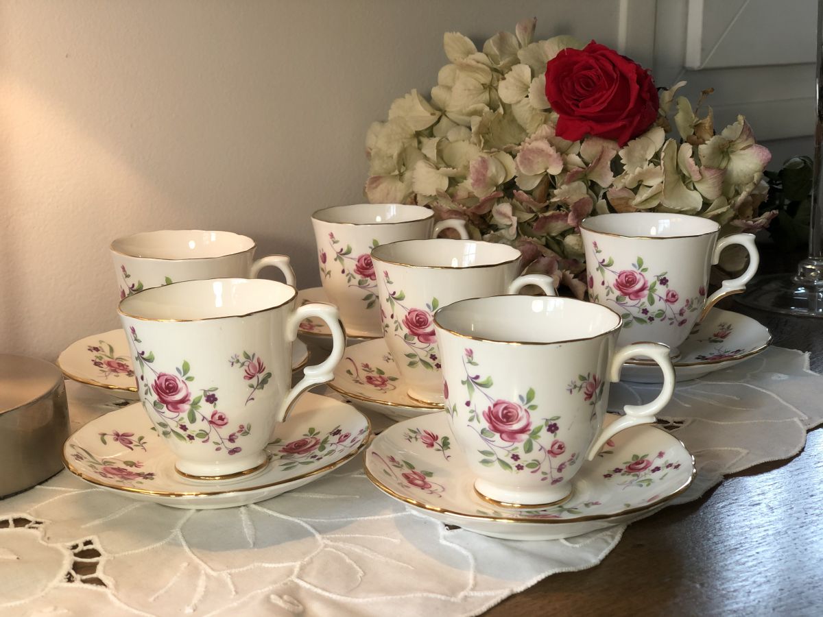 6 anciennes Tasses anglaises avec les 6 soucoupes Crown Staffordshire Porcelaine fine.
