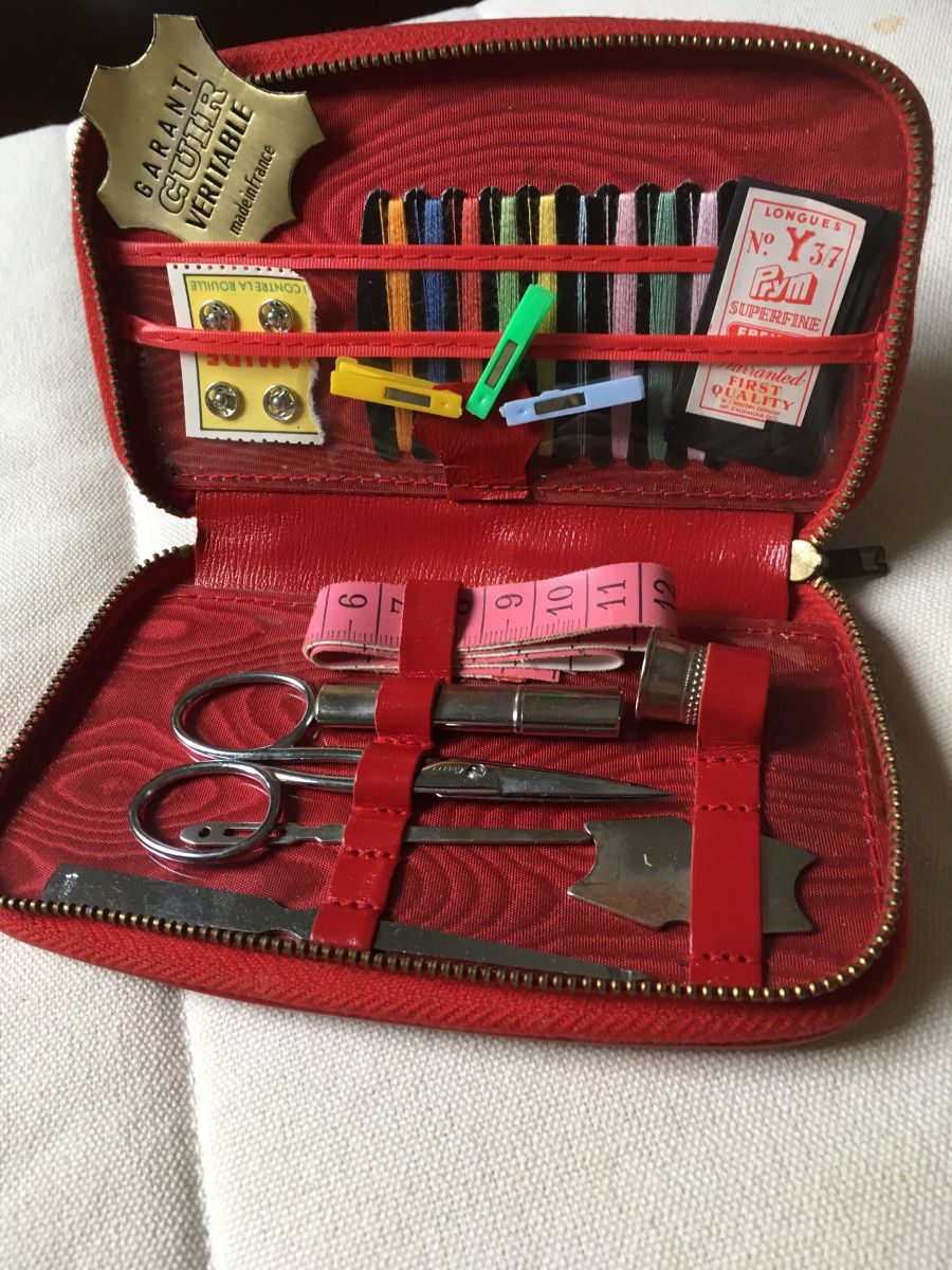 Nécessaire couture en cuir rouge