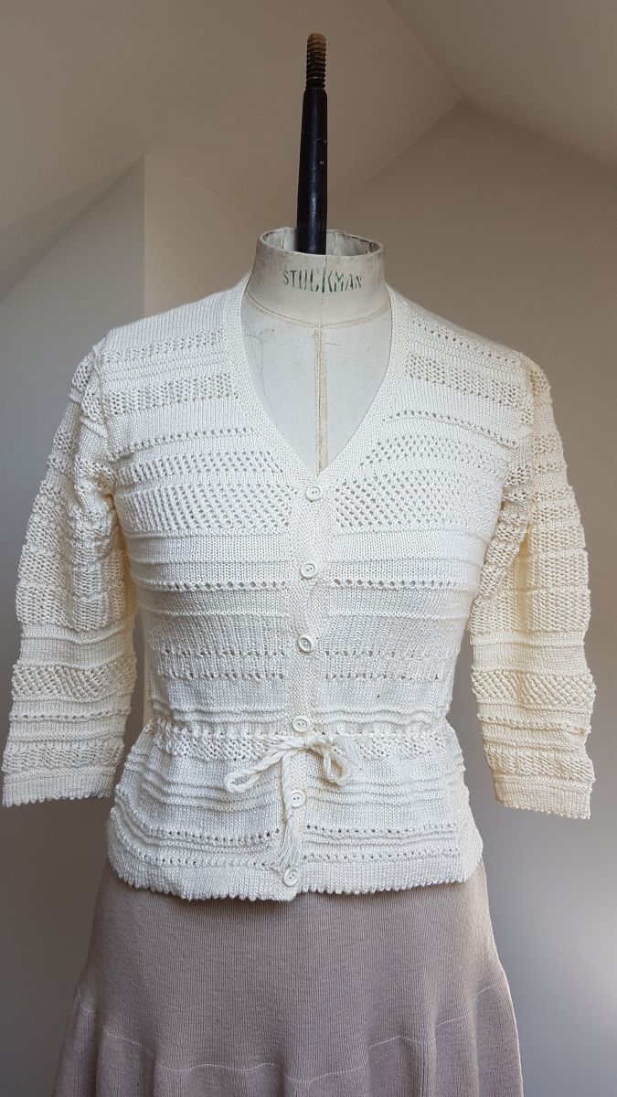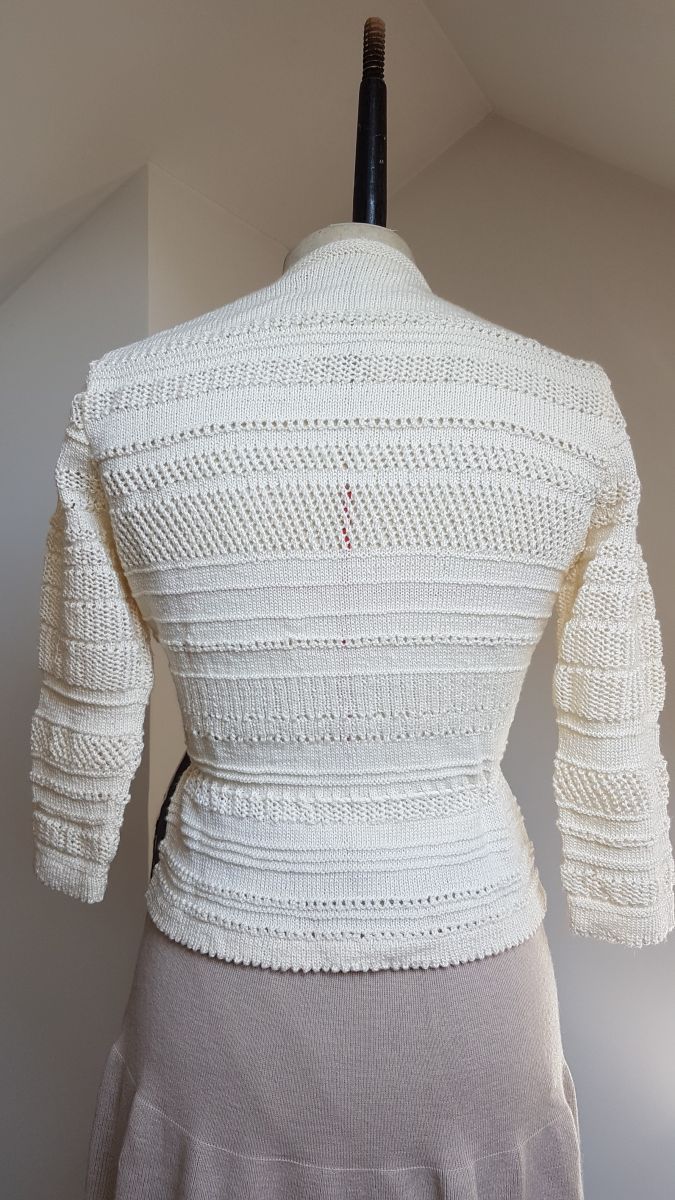 fait main pièce unique; taille 36 . longueur 46 cm cet article a été créé dans les années 70 par une femme qui aimait la haute couture et qui aujourd'hui a 90 ans . petite taches devant rien de bien méchant.