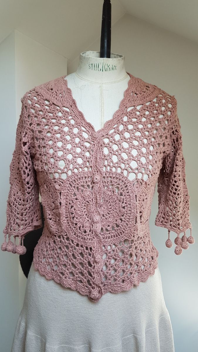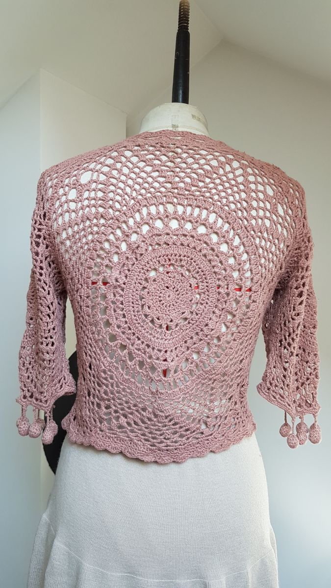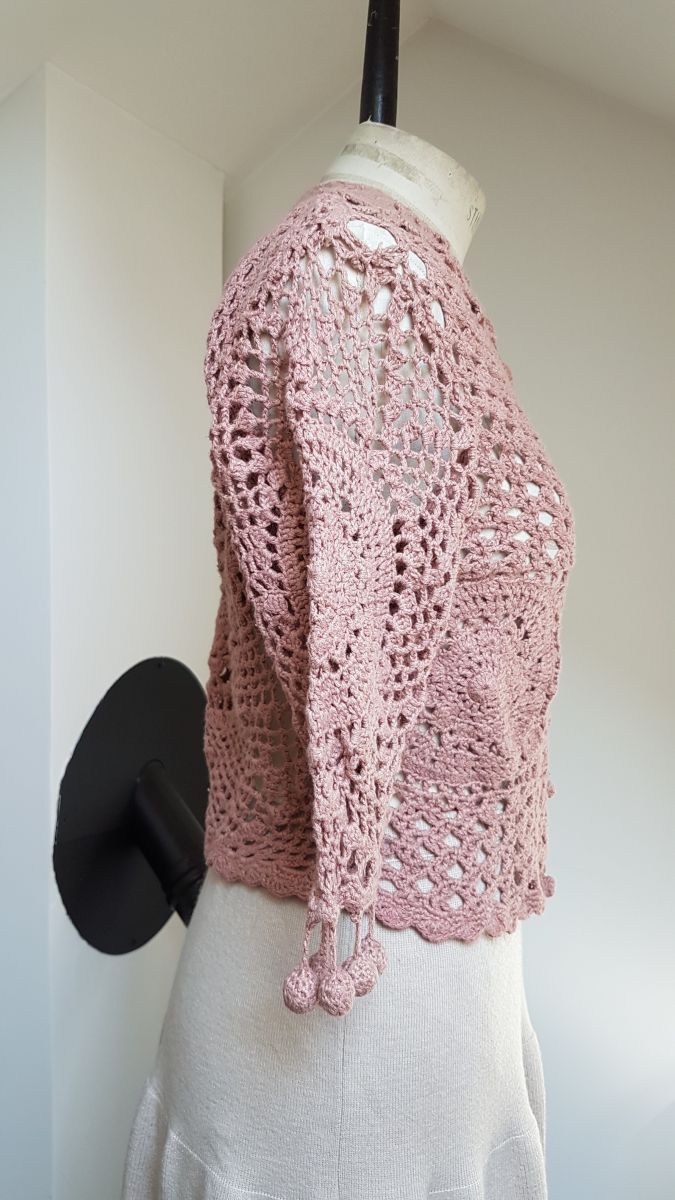 gilet en crochet marron- rose