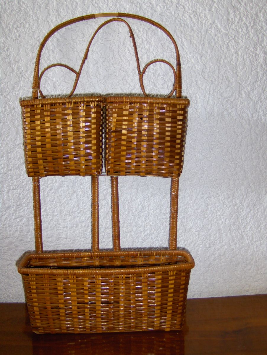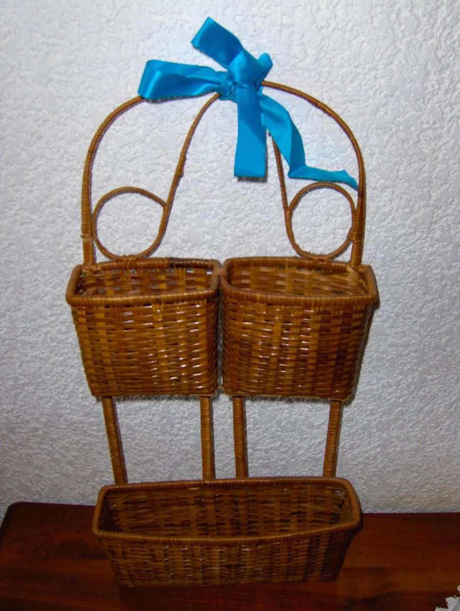 Ancien porte-courrier en osier. En bon état excepté un manque (cf photo 3). Un simple nœud assortie à votre décoration le masquera.