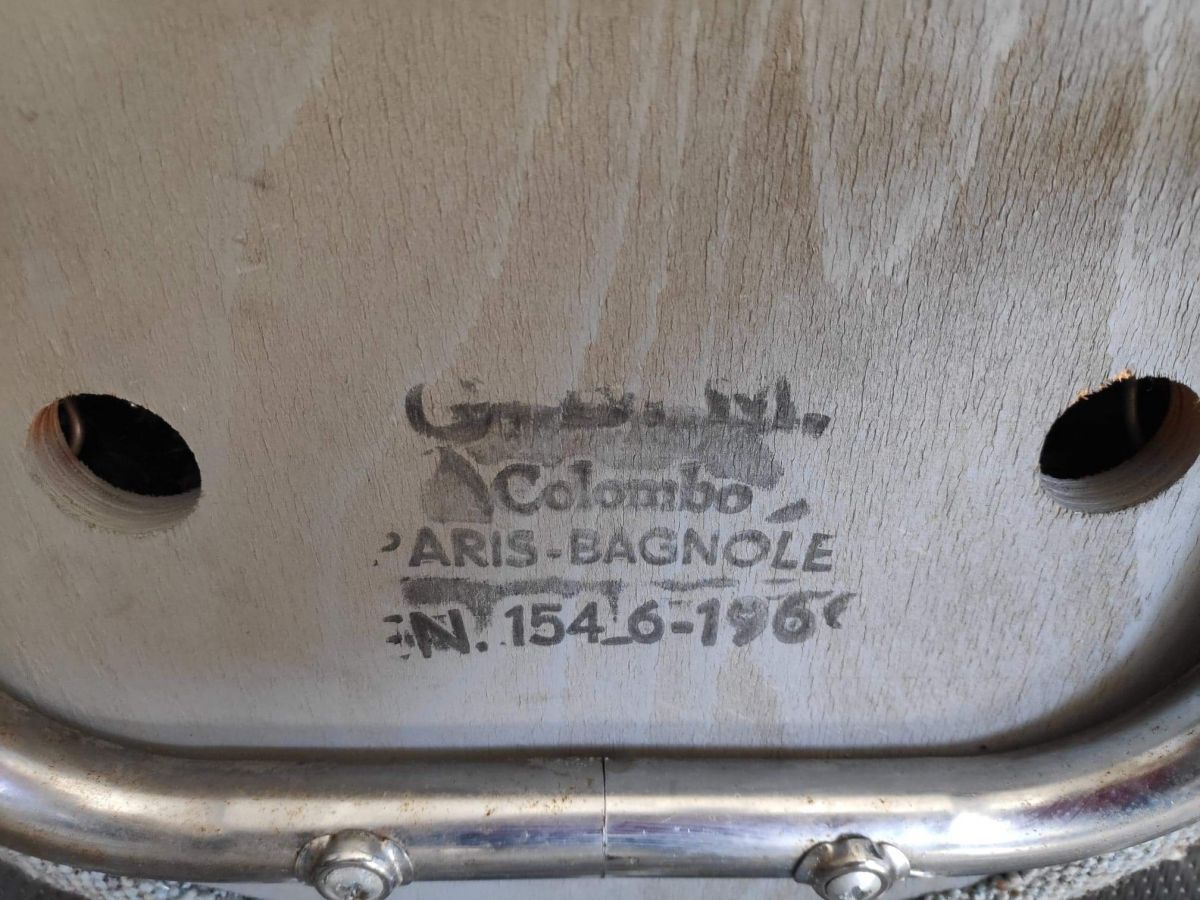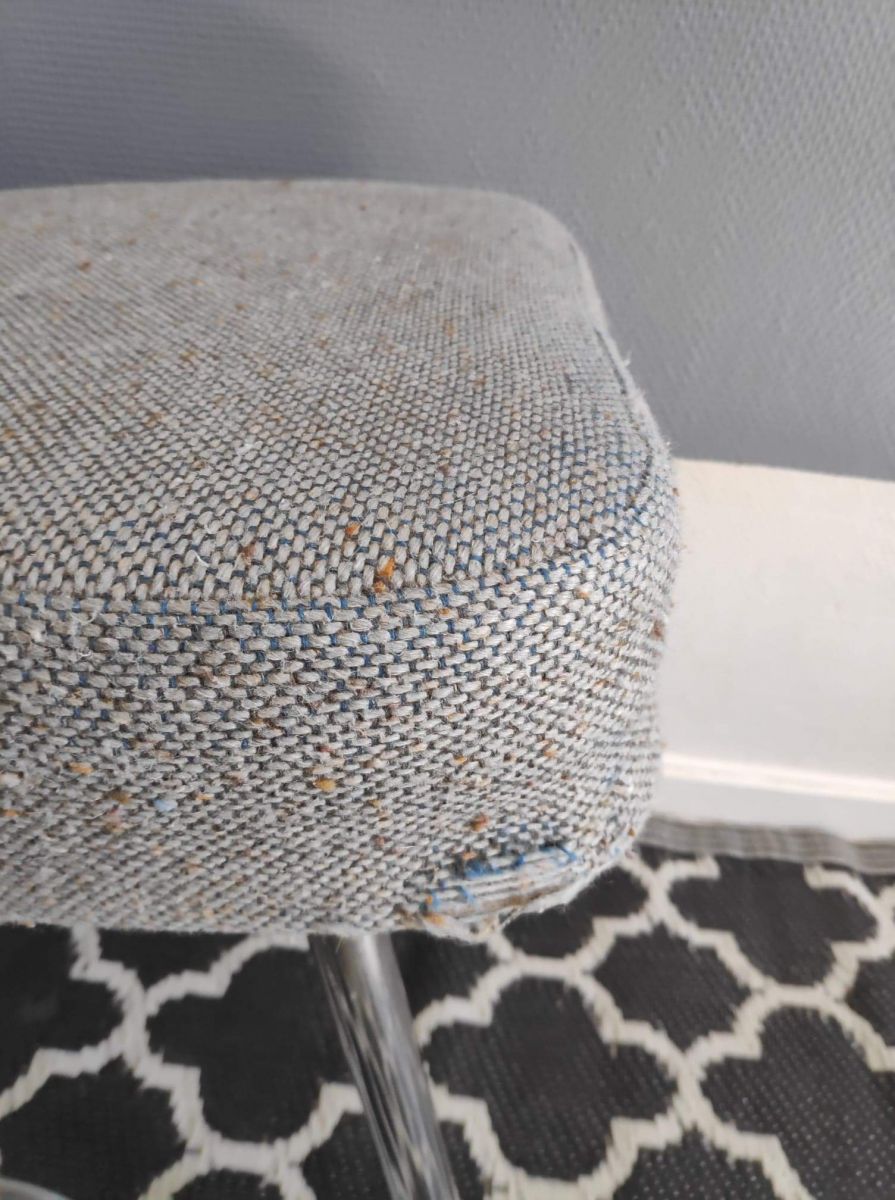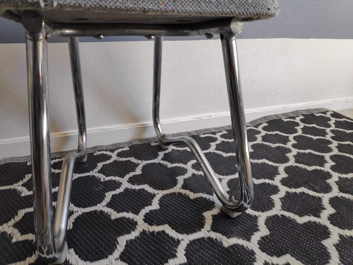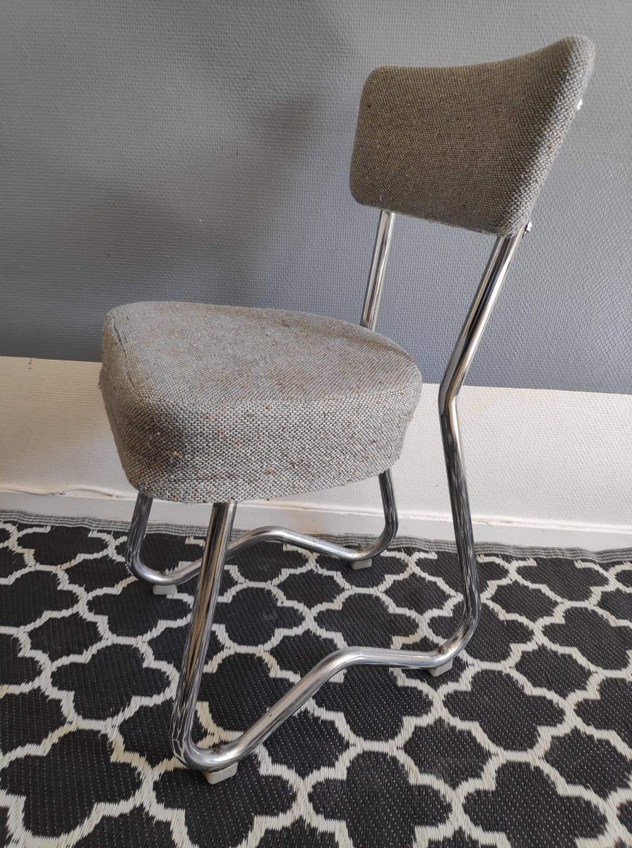 chaise de bureau "traineau" tissu gris chiné et métal tubulaire chromé années 50