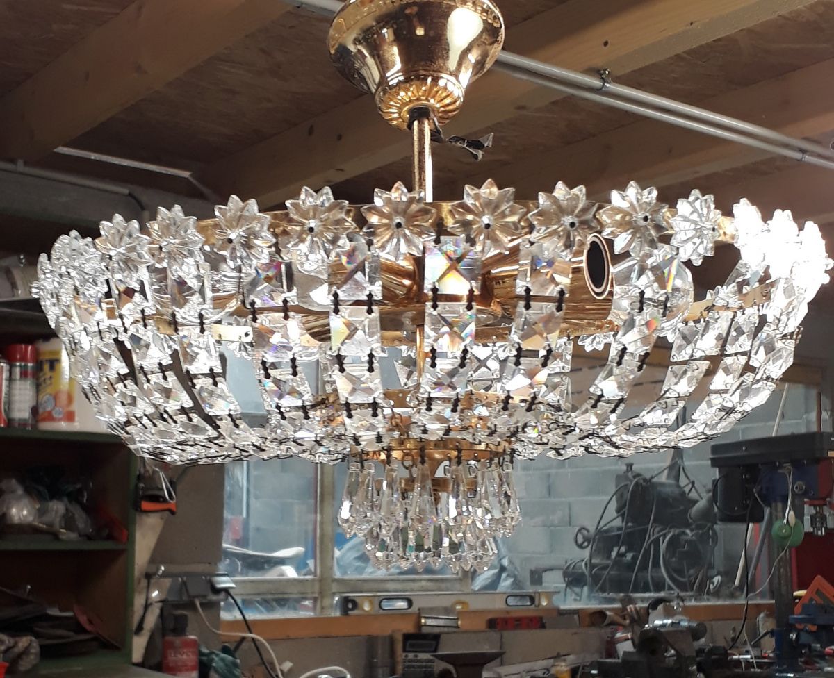 lustre cristal a pampilles 40cm , 1970 ,6 ampoules hauteur de fixation plafont 30cm