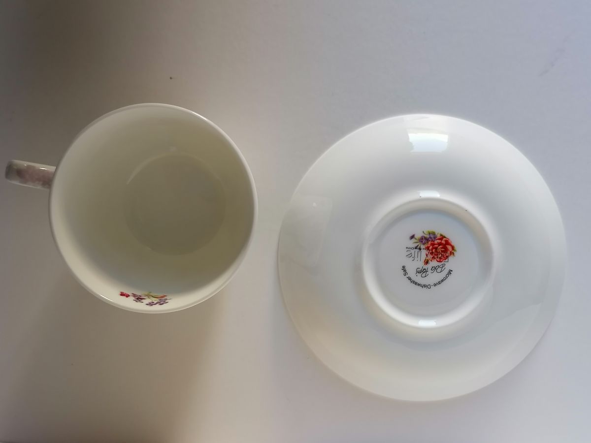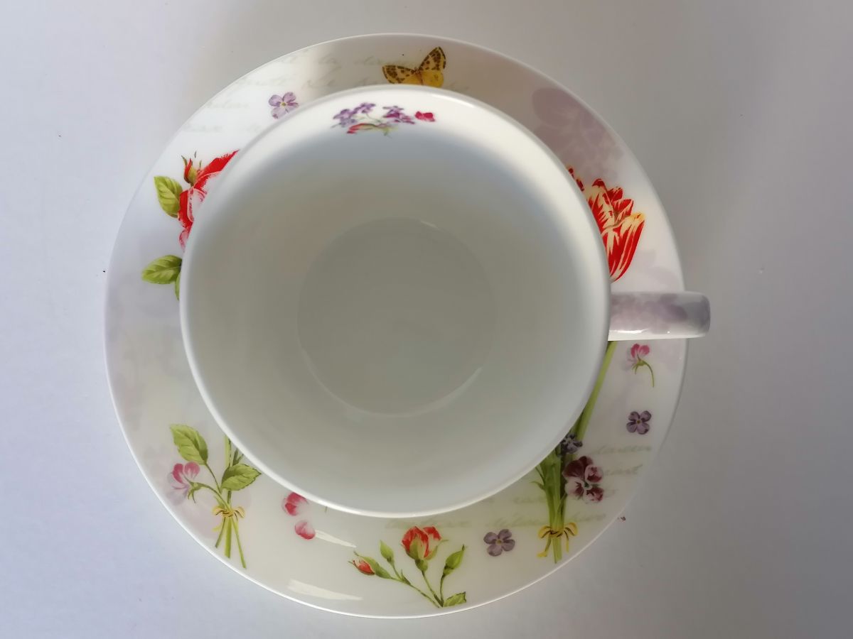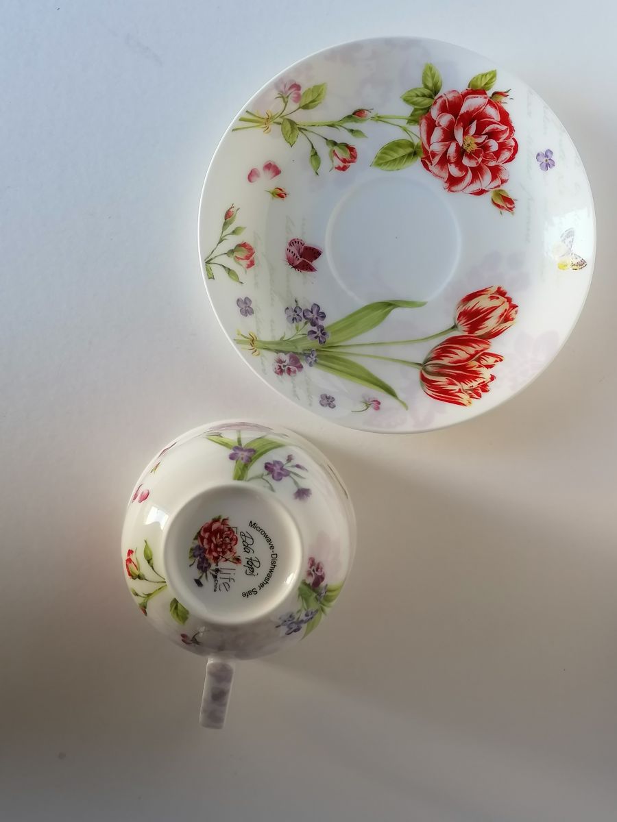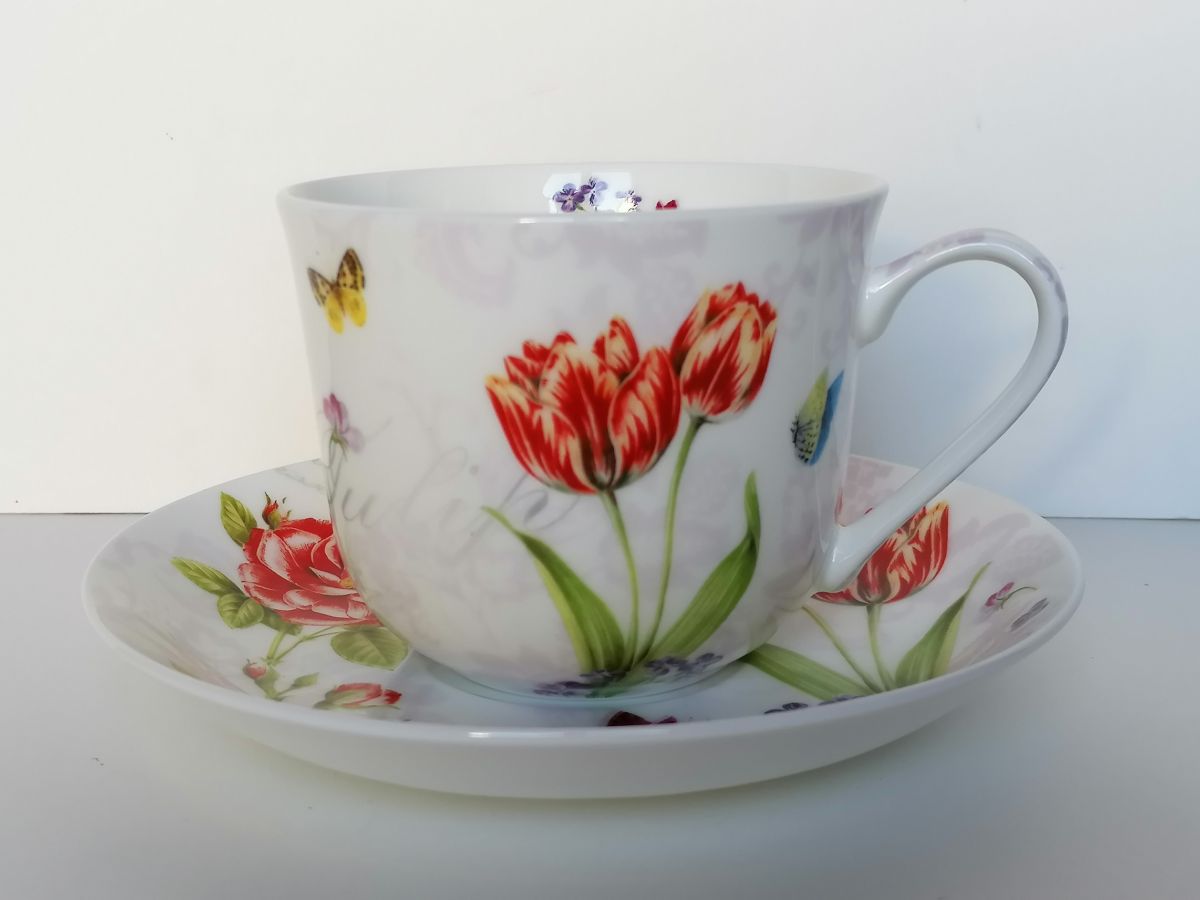 Magnifique tasse à déjeuner en porcelaine fine et sa sous-tasse, dans sa boîte d'origine.