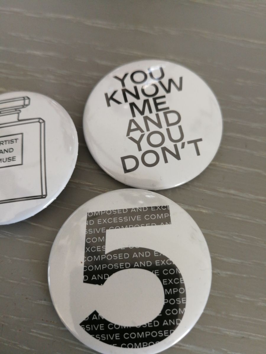 Trois badges. Artist And Muse. 5 composed And Excessive. You know Me And you Don't
