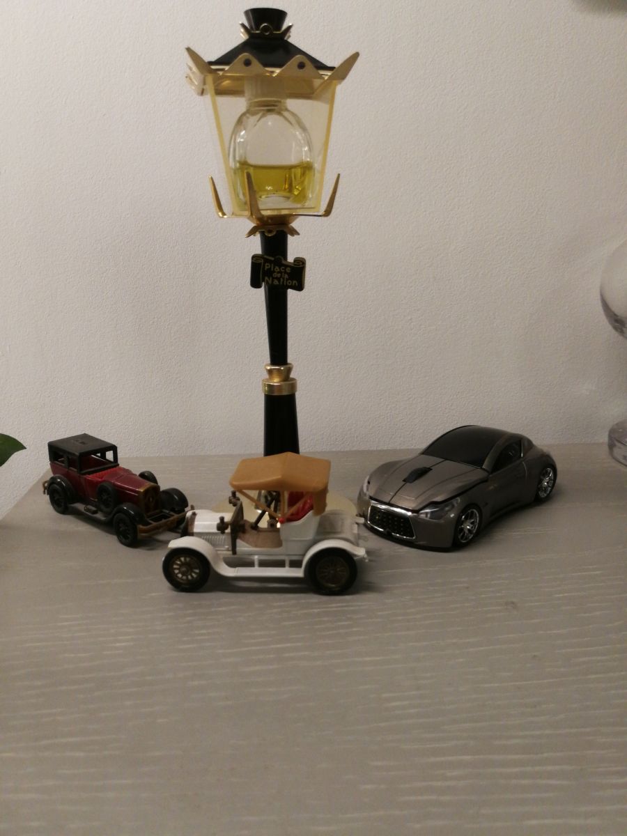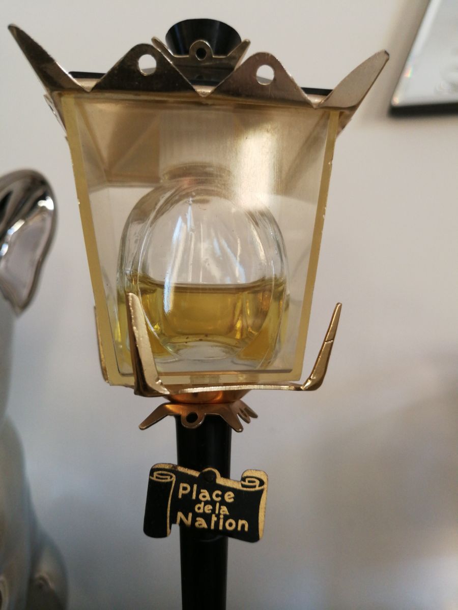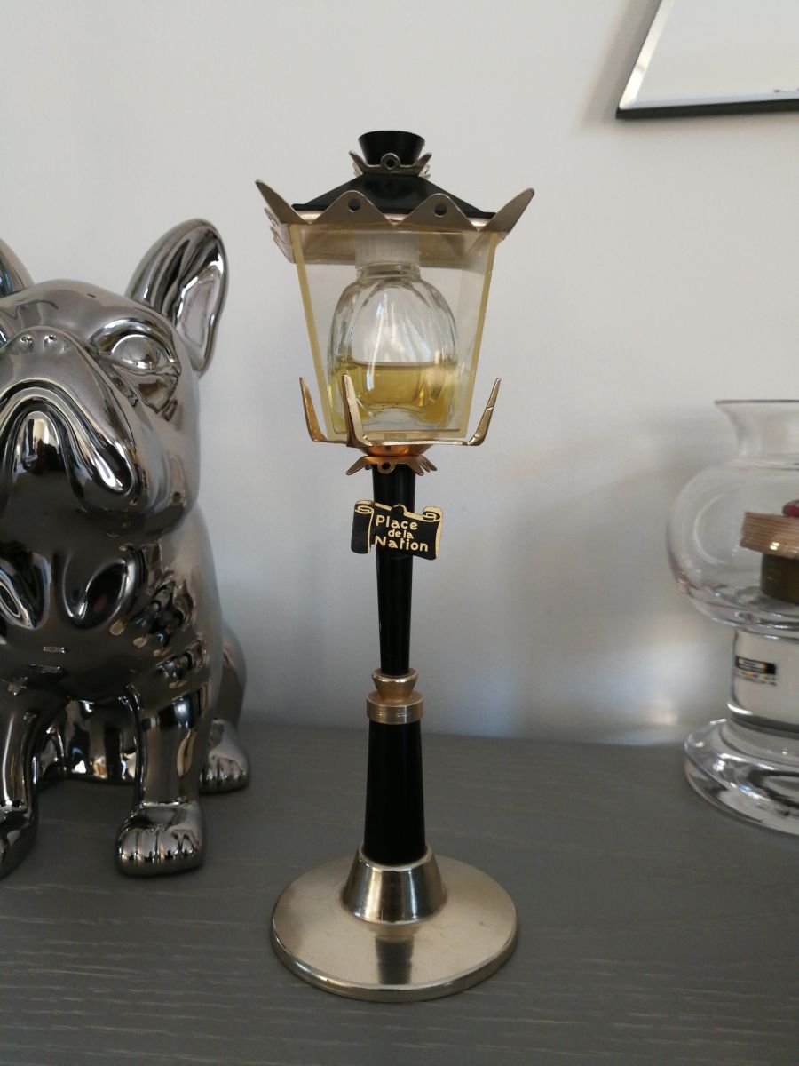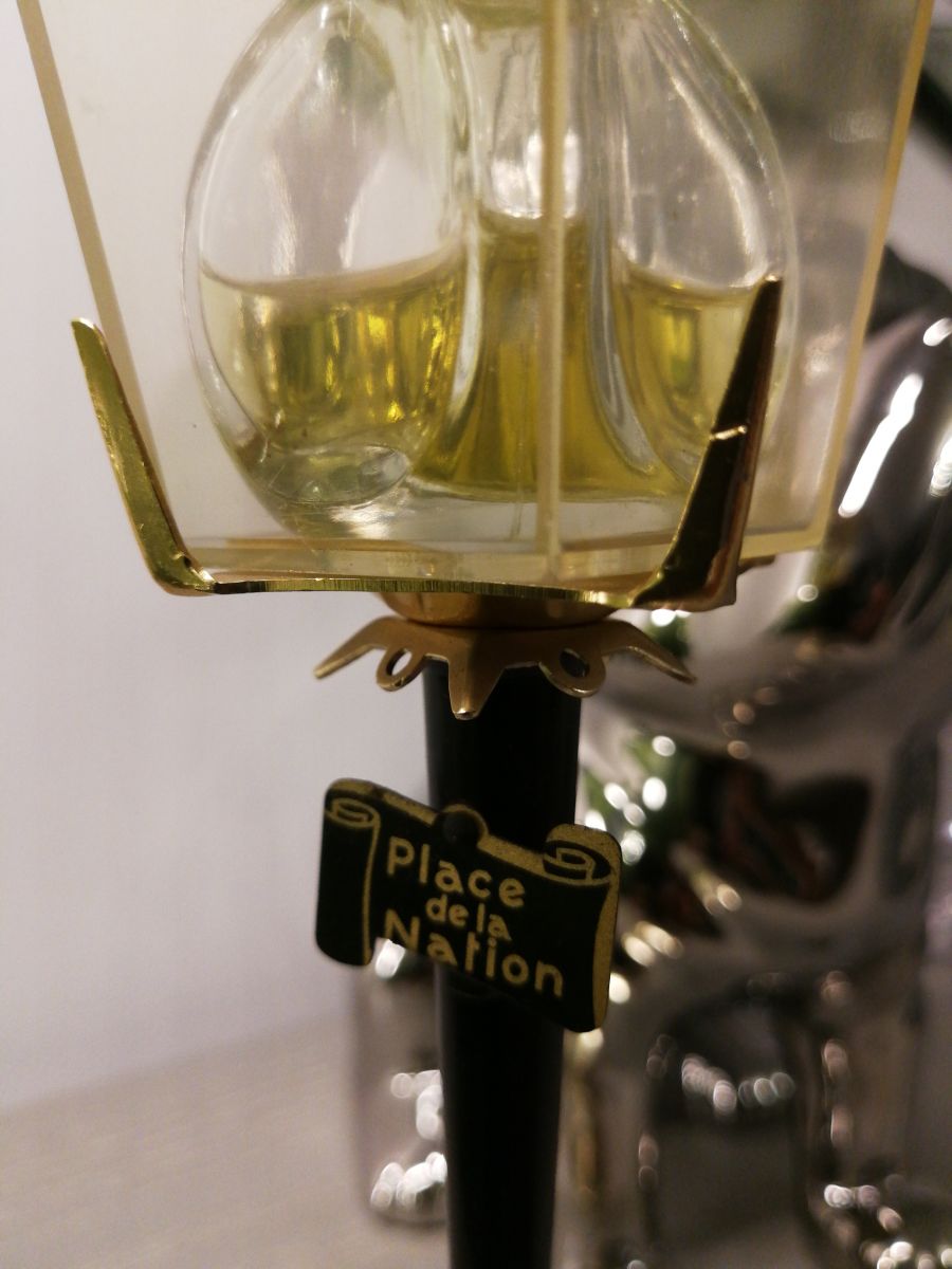 Bouteille de Parfum en forme de lampadaire Morhange Paris place de la Nation. La bouteille n'est pas pleine à voir sur les photos. Je tiens à préciser que la lampe n'est pas cassé, elle est posé sur le socle afin d'accéder à la bouteille de Parfum.
