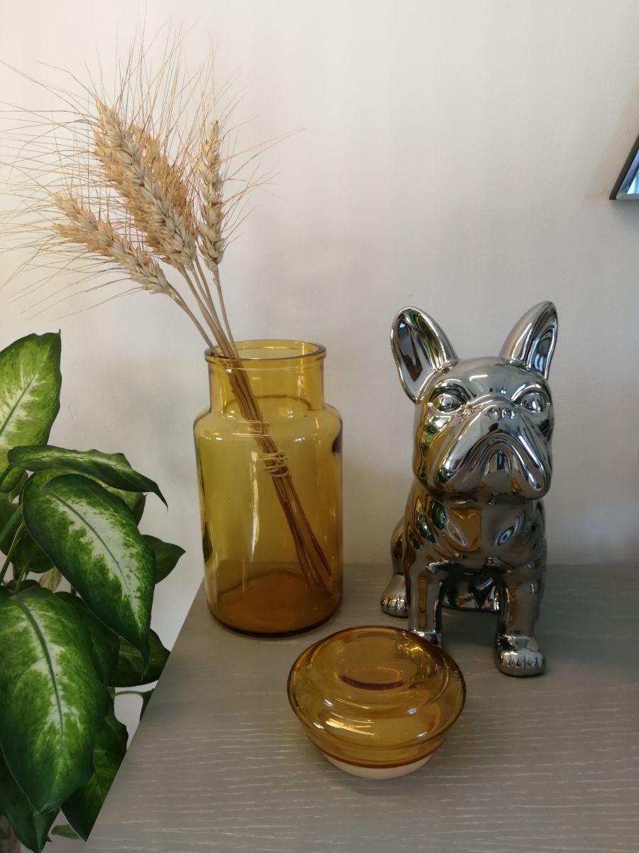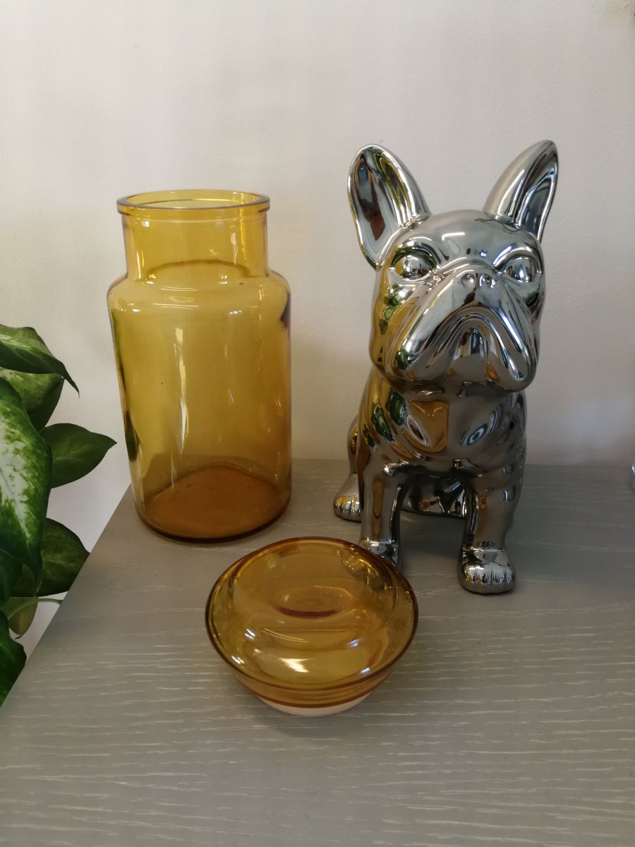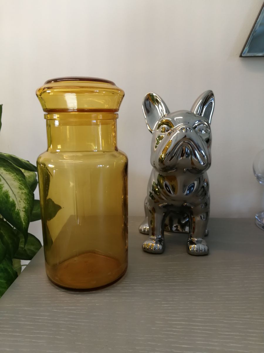 Pot alimentaire en verre avec couvercle jaune en bonne état