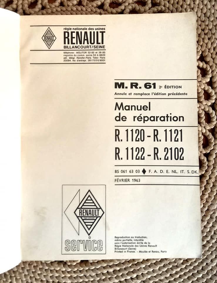 Manuel de réparation MR 61 pour Renault 4 -1963