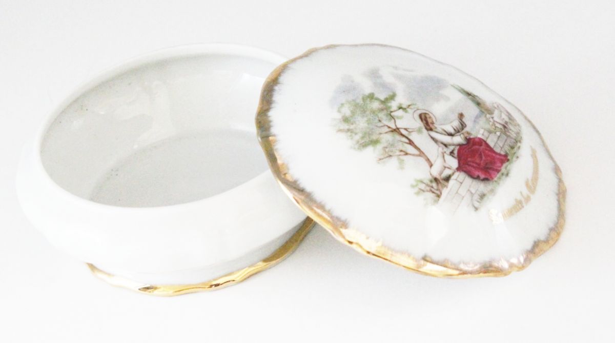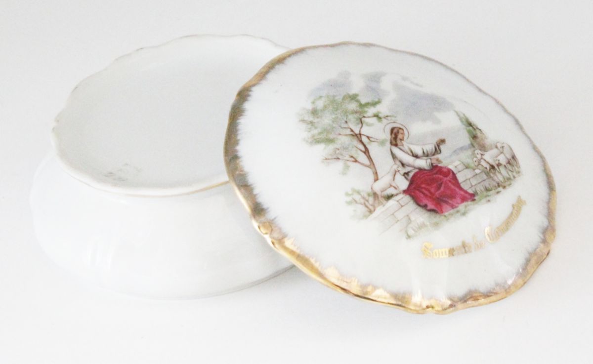Bonbonnière en porcelaine souvenir de communion , boite à bijoux, boite de communion.