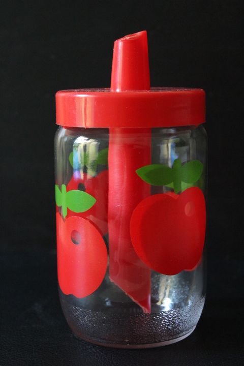 Le fameux pot HENKEL des années 70 à motif pomme, décliné ici en pot verseur à sucre en poudre. En très bon état d’usage, idéal pour compléter (ou commencer) la série.
