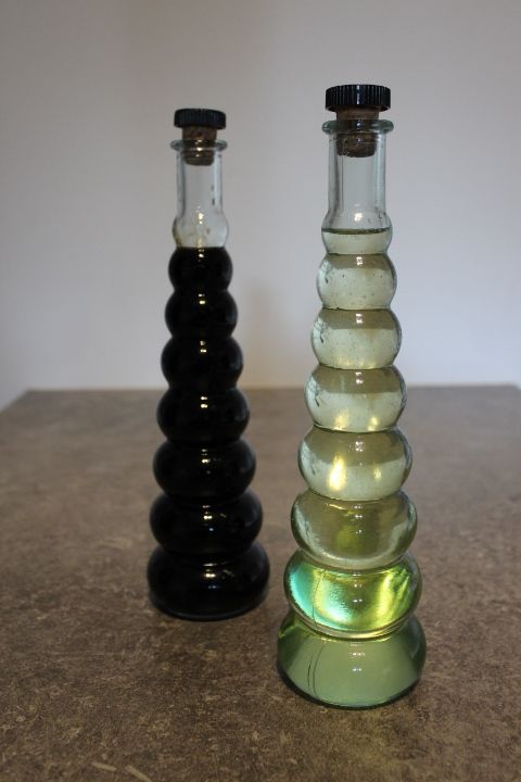 J'ajoute que j'ai trouvé deux petits bouchons de liège qui renforcent leur côté vintage et qui seront fournis avec ; je les prendrai en photos en remplacement des bouchons noirs que l'on voit actuellement.