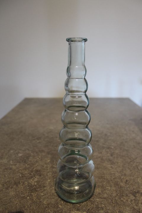 Ensemble de deux bouteilles vintage en verre transparent, formant des anneaux superposés. Les deux sont identiques et en parfait état.