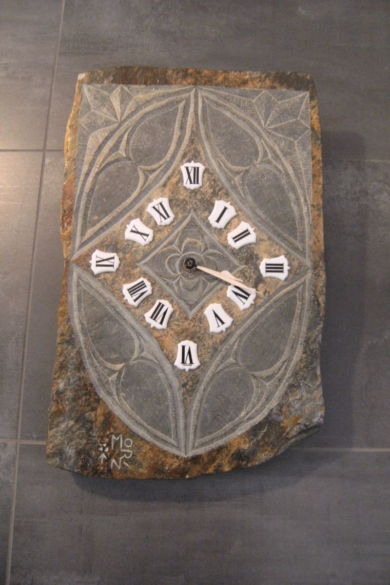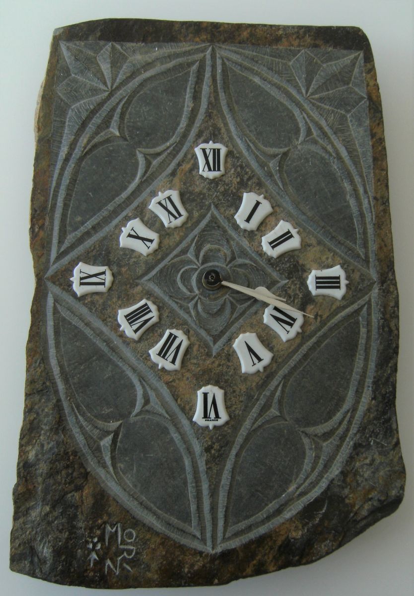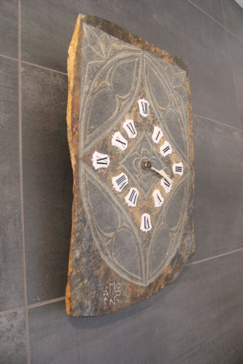 Horloge murale en ardoise ,sculptée et signée Morin .