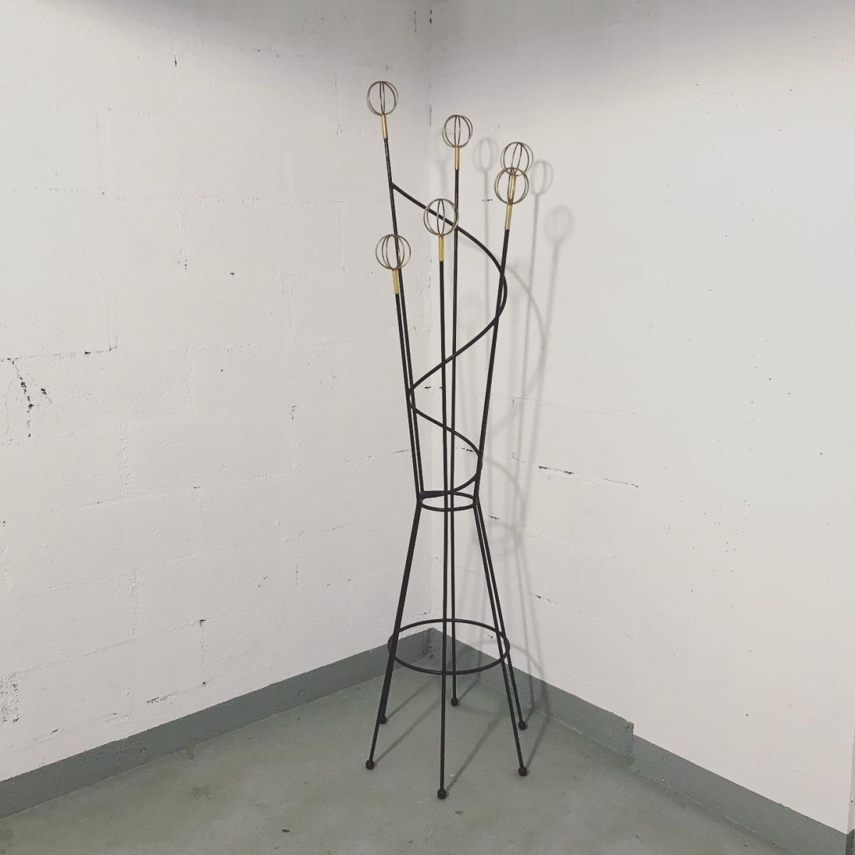 Structure en métal laqué noir, patères ajourés en métal doré.