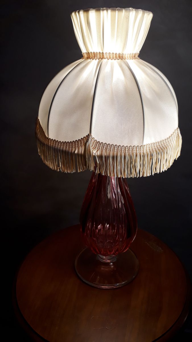 lampe cristal murano verre soufflè rose Italie magnifiqu