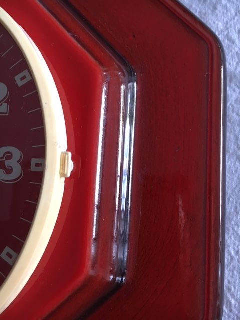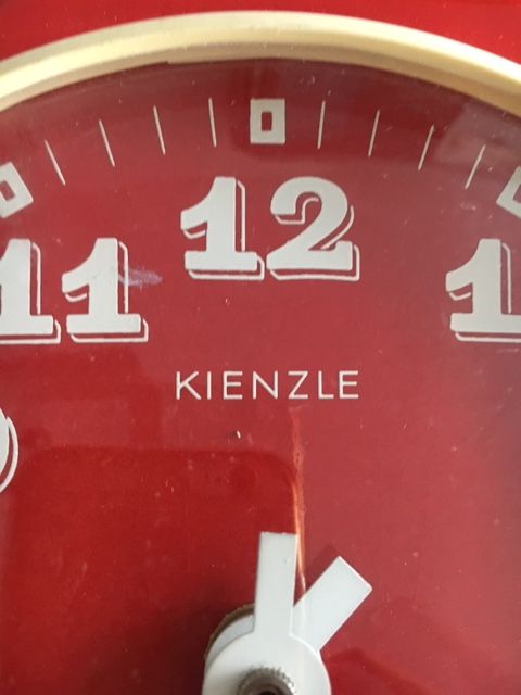 Belle horloge vintage en céramique rouge avec des liserets noirs (trés discrets sur les arrêtes de céramique). Provenant de la Maison KIENZLE (Allemagne) connue pour la fabrication de ses mécanismes de precision depuis 1850.