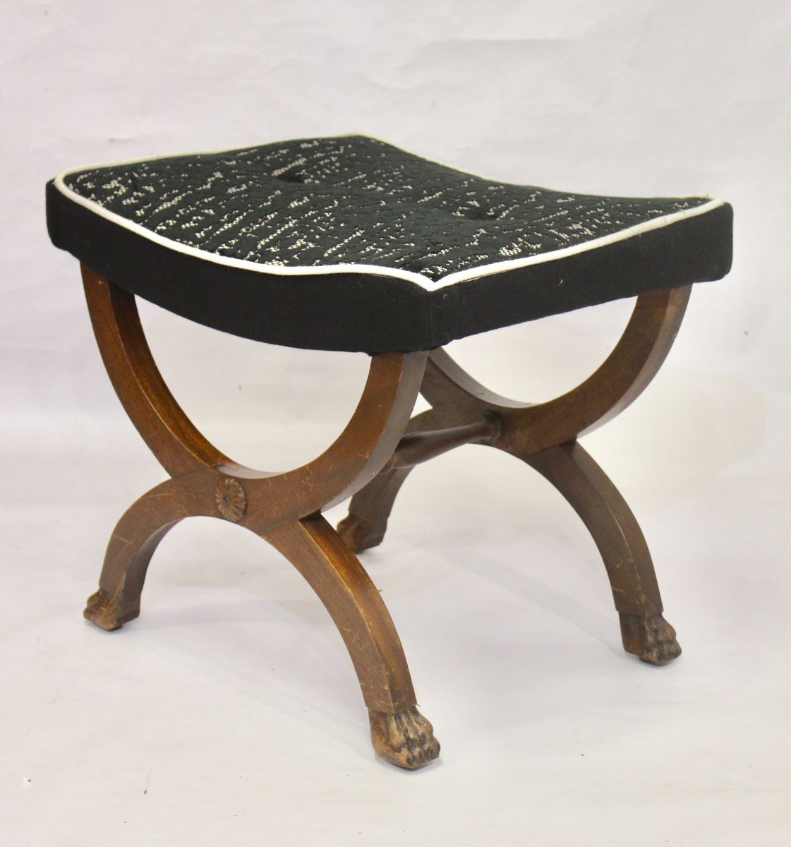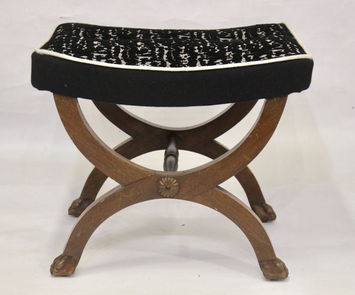 Tabourets piètement en X en acajou de style Empire époque 1900. Pieds griffes de toute beauté.