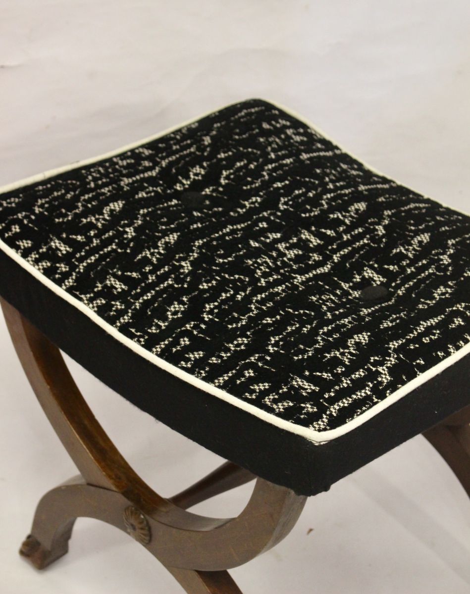 Tabouret Empire 1900 acajou retapissé.