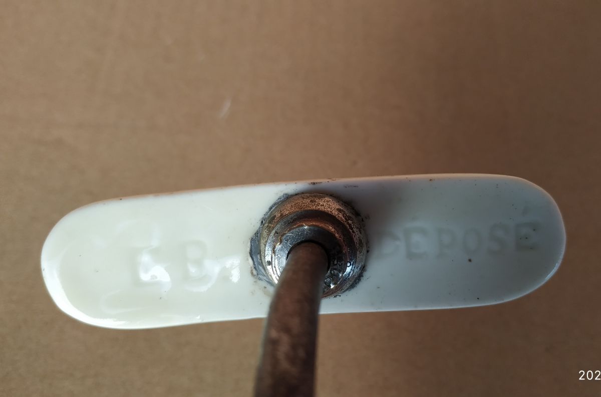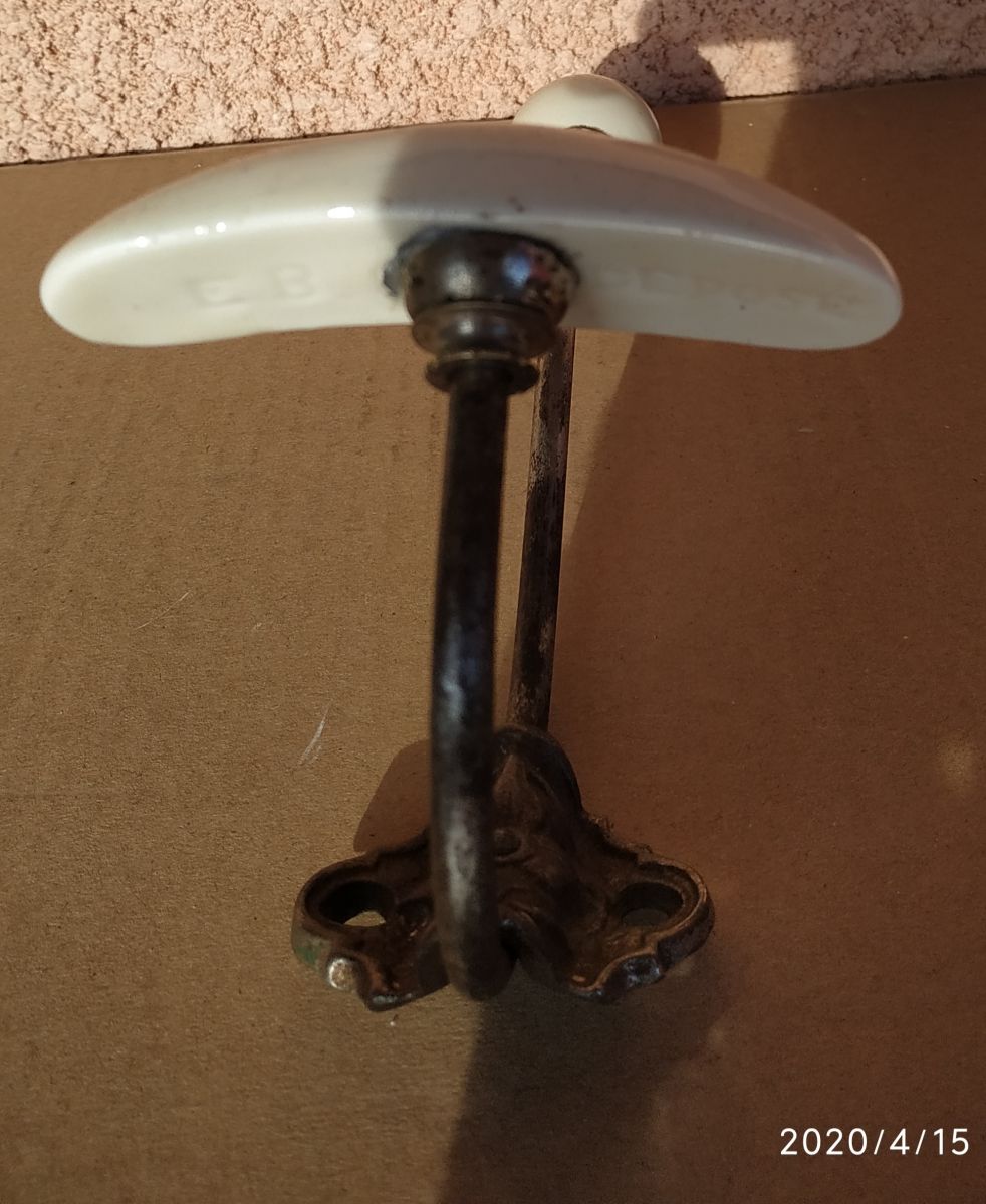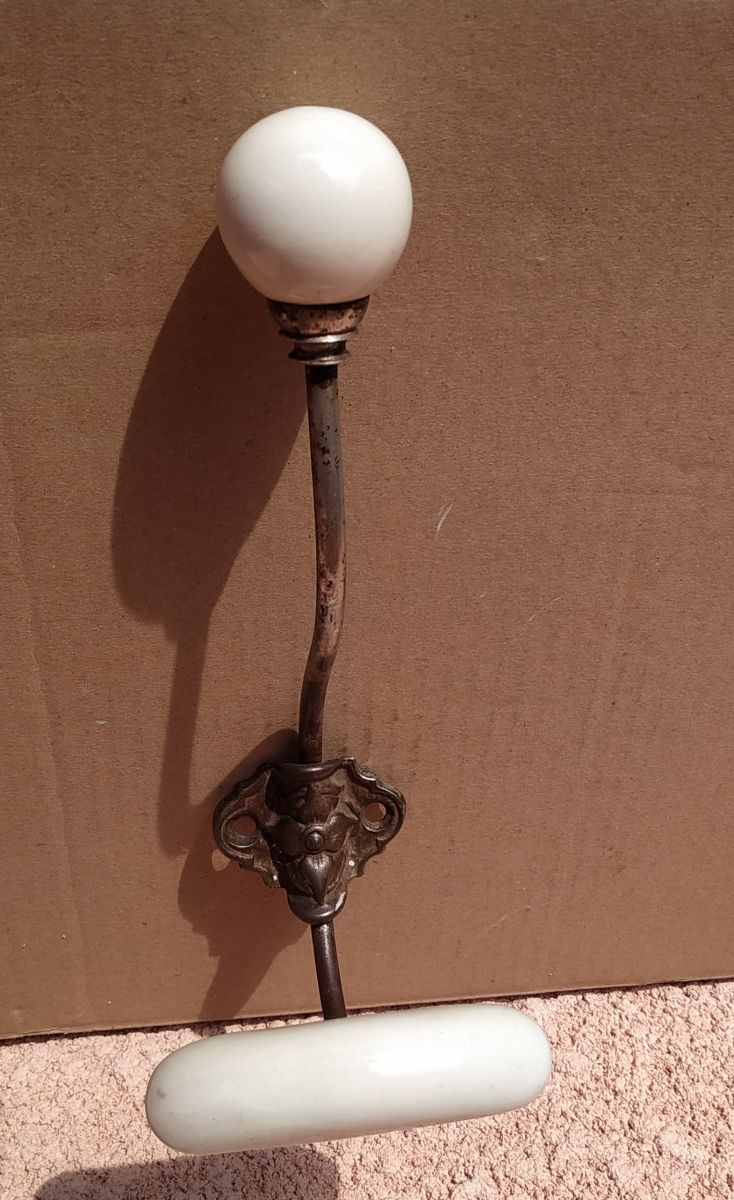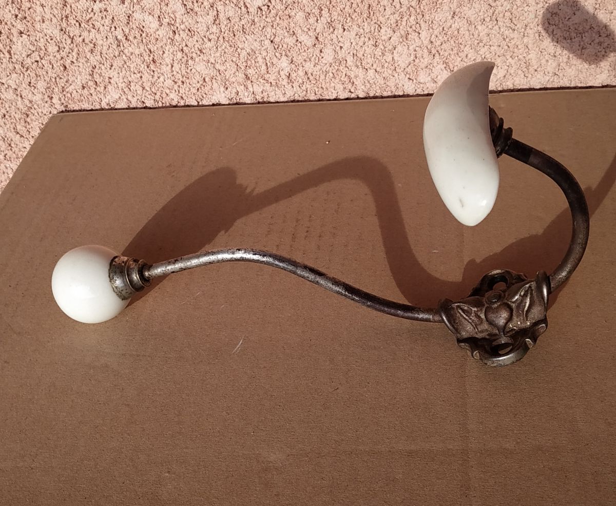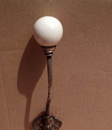Patère antique à restaurer . elle est en acier et céramique où porcelaine