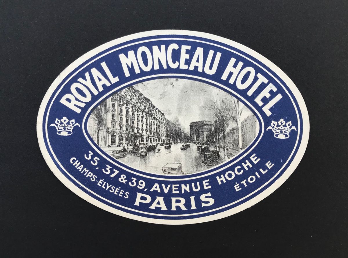 Rare ! Etiquette bagage "Royal Monceau" Paris, Originale