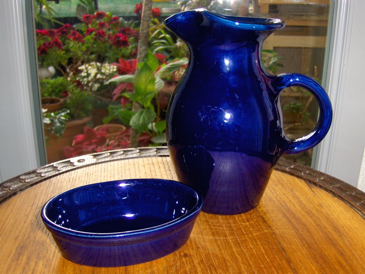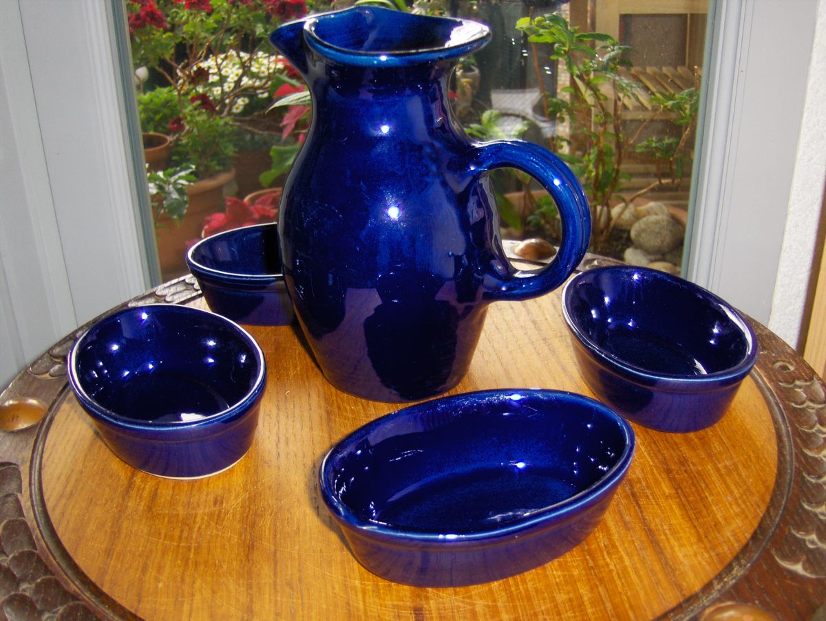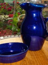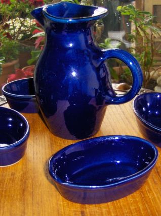Pichet/carafe + 4 raviers émaillés bleu klein