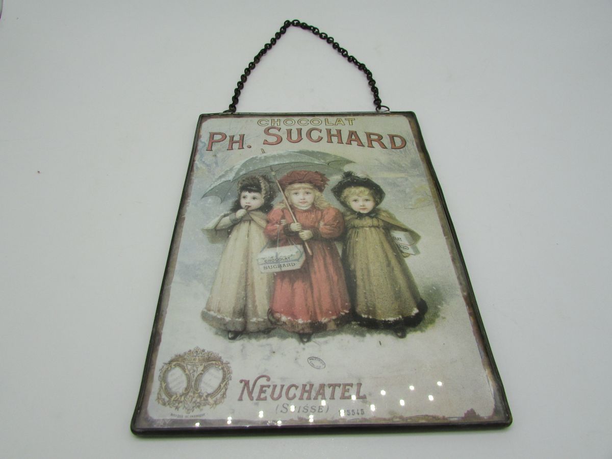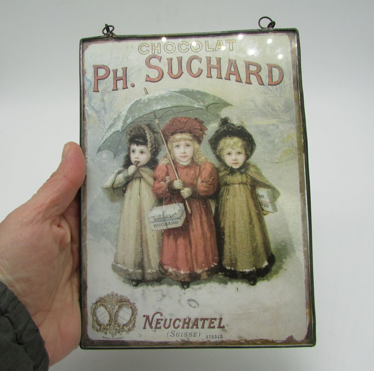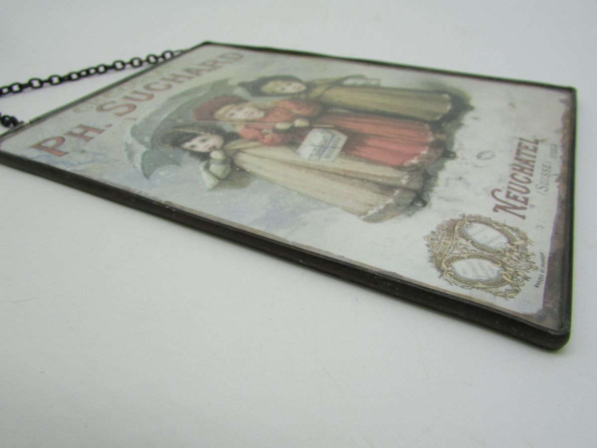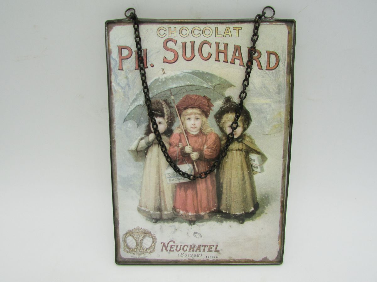 sous verre et cerclé de métal, avec chainette pour accroche mural