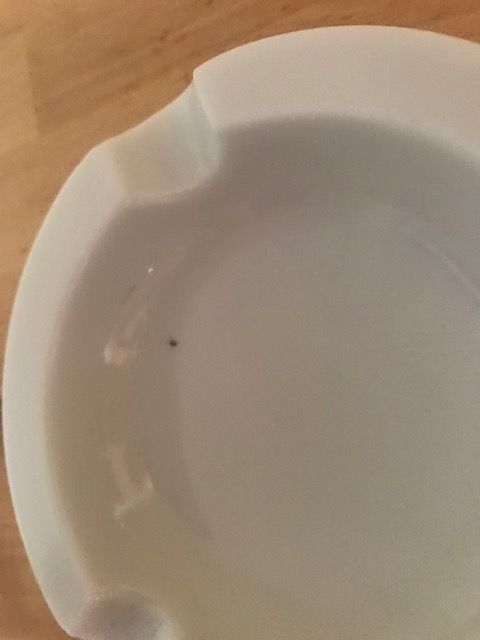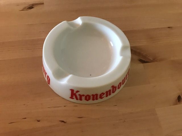 Cendrier publicitaire bon état sauf un petit point noir (trace de brûlure ?). Le cendrier fait 14,5 cm de diamètre et 4 cm d'épaisseur