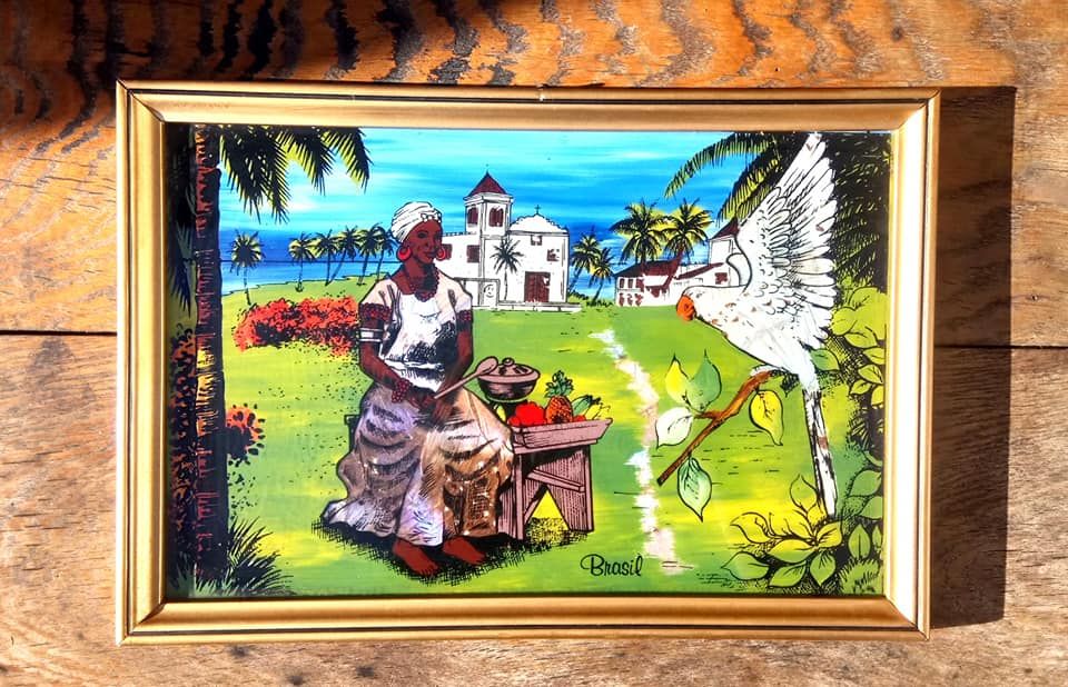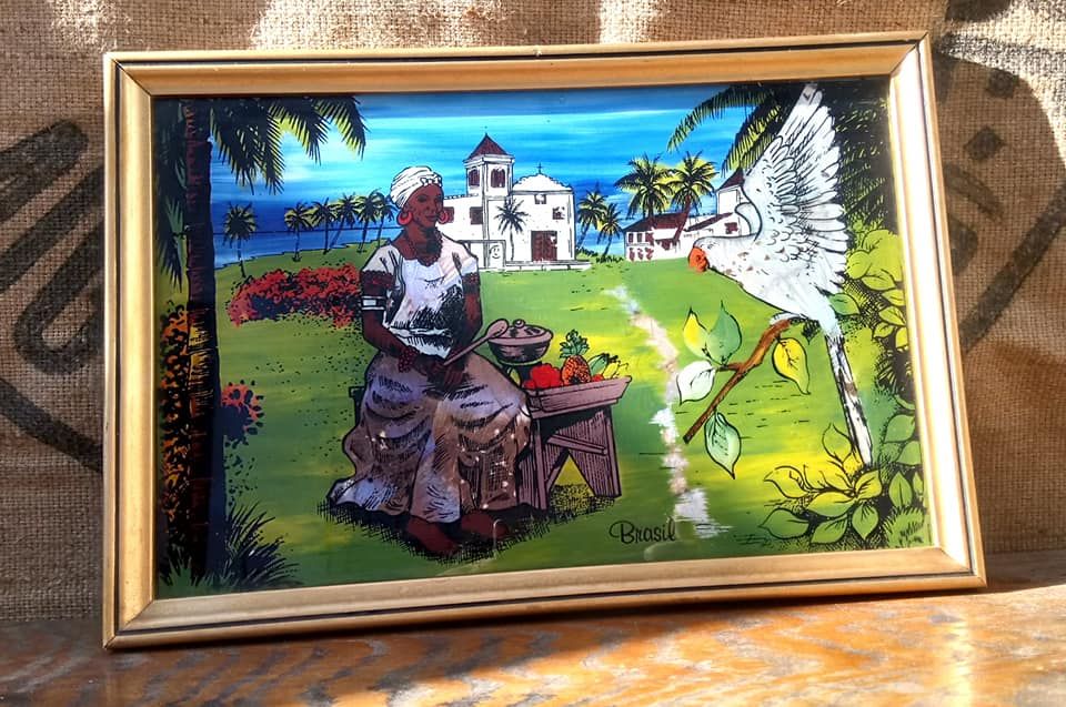 Joli cadre souvenir du Brésil sous verre et cadre doré