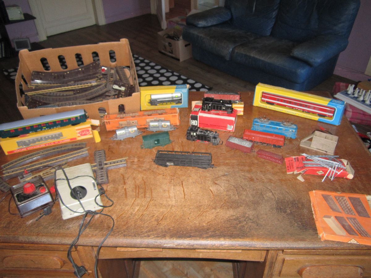 Ensemble d'éléments de train électrique datant des années 50 et 70 composé de :
