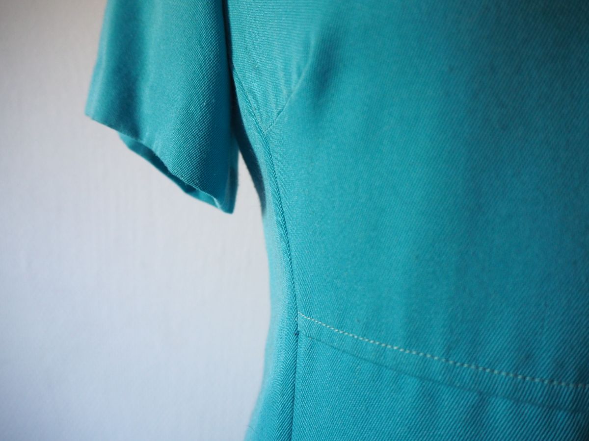 Superbe robe trapèze turquoise dans le pur style Courrèges/Twiggy/Mary Quant datant des années 1960.