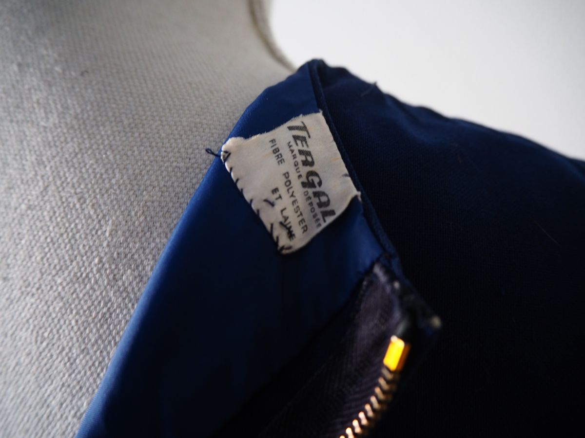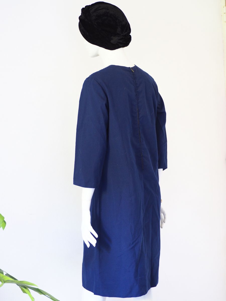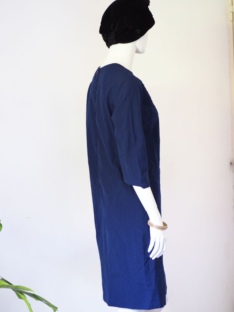Jolie petite robe bleue marine très babydoll dans le style Mod datant des années 1960. Coupe droite (à ceinturer).